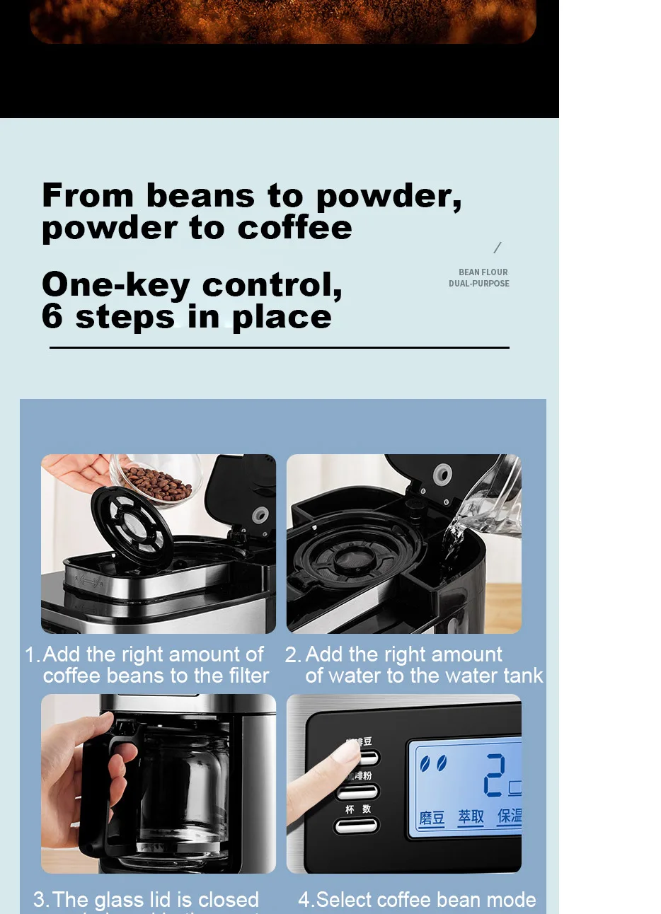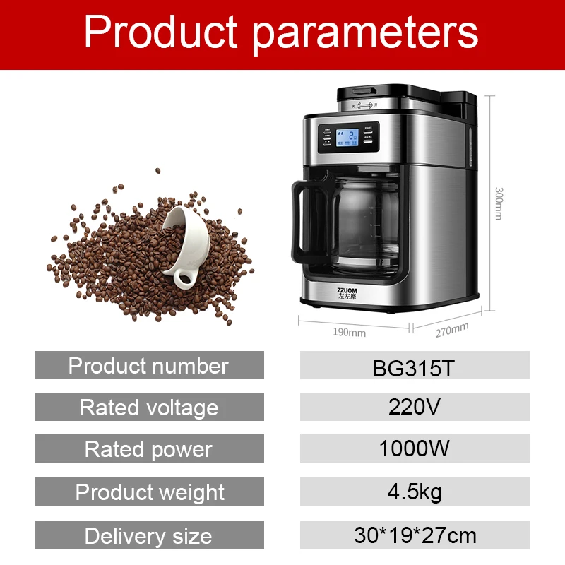 Кофеварка Бытовая Автоматическая, 1000 Вт светодиодный ным дисплеем