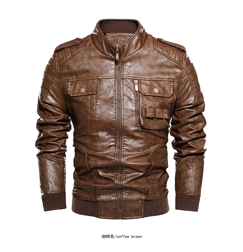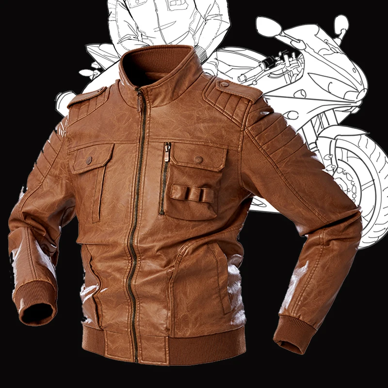 Мужская куртка-бомбер из искусственной кожи, мотоциклетная куртка-бомбер в стиле ретро, флисовая куртка из искусственной кожи, уличная одежда на зиму, 2021