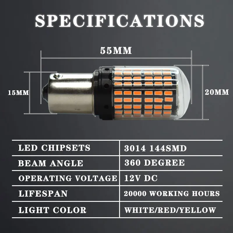 1 шт. 1156 1157 Автомобильная светодиодсветильник лампа 12V T20 7440 7443 P21W BA15S BAU15S PY21W W21W Canbus 144smd указатель поворота, парковочная лампа заднего хода