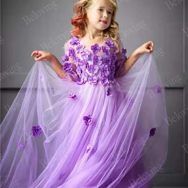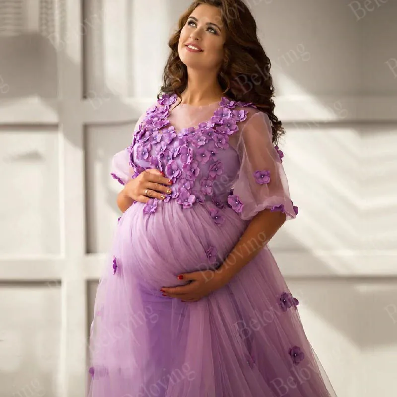 Фиолетовое свадебное платье с 3D цветочной аппликацией для беременных платье принцессы с коротким рукавом свадебное платье для матери дочери свадебное платье