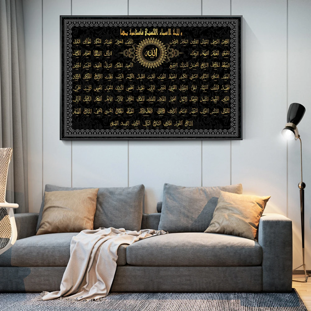 99 названий Аллаха, исламское искусство, картины, печать на холсте, художественные плакаты и принты, Аль Асма уль Хусна, мусульманское искусство, картины, домашний декор