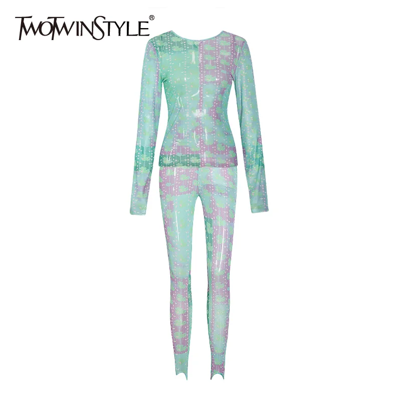Женский комплект из двух предметов TWOTWINSTYLE, облегающий комплект из двух предметов, топ с круглым вырезом и длинными рукавами, юбка с высокой талией, 2020