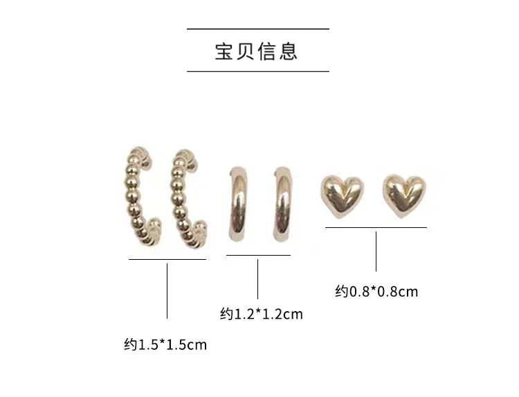 Металлический сплав с серебряным покрытием иглы Золотые сердца круги бусины Кафф серьги гвоздики для Для женщин 3 паркомпл.