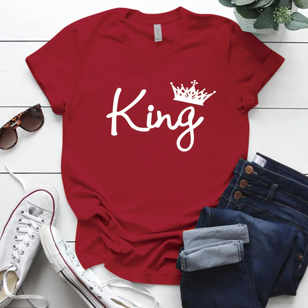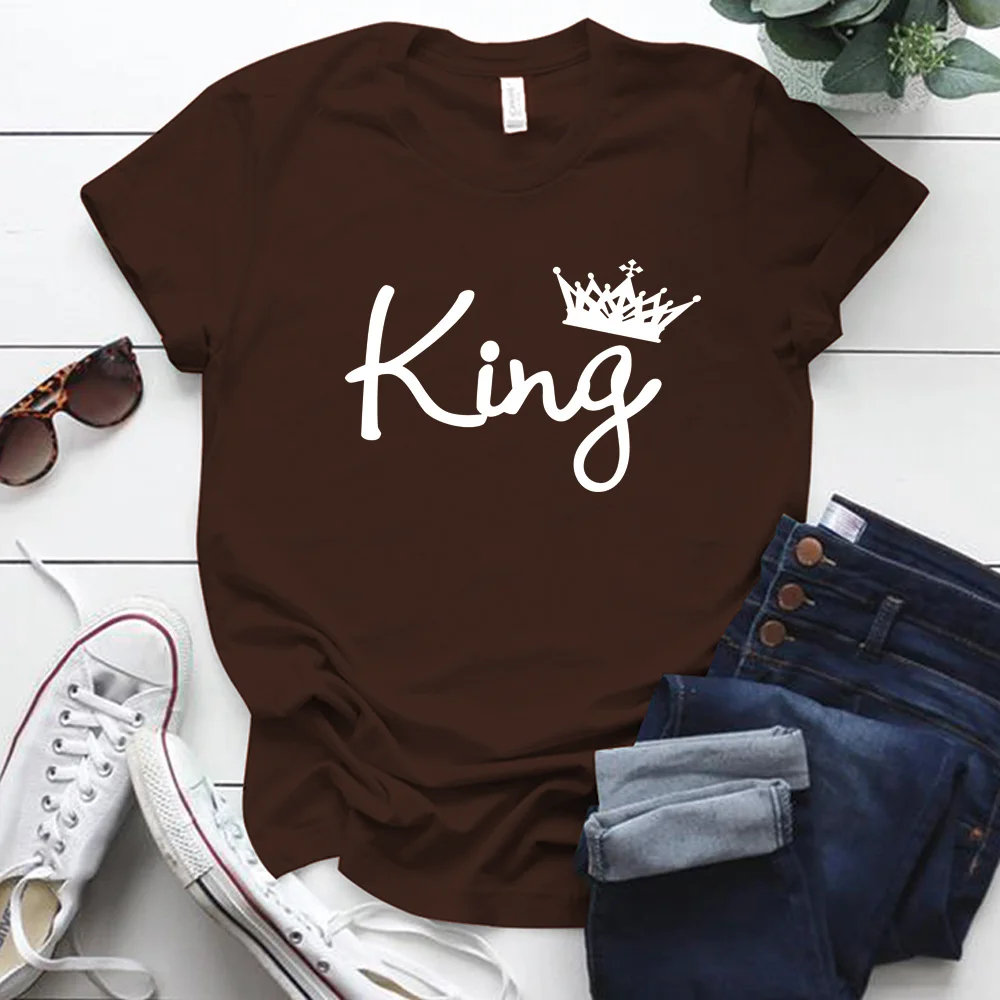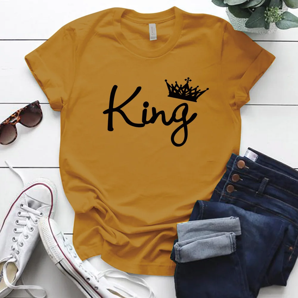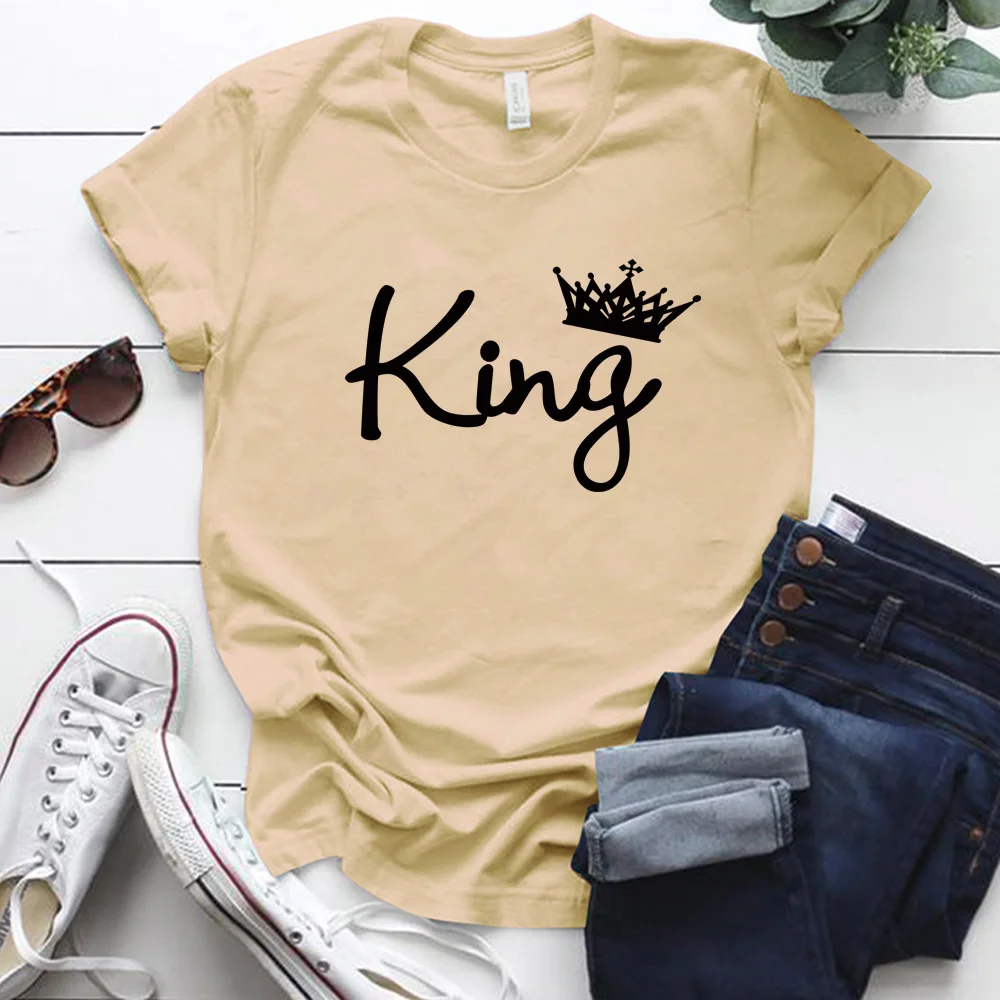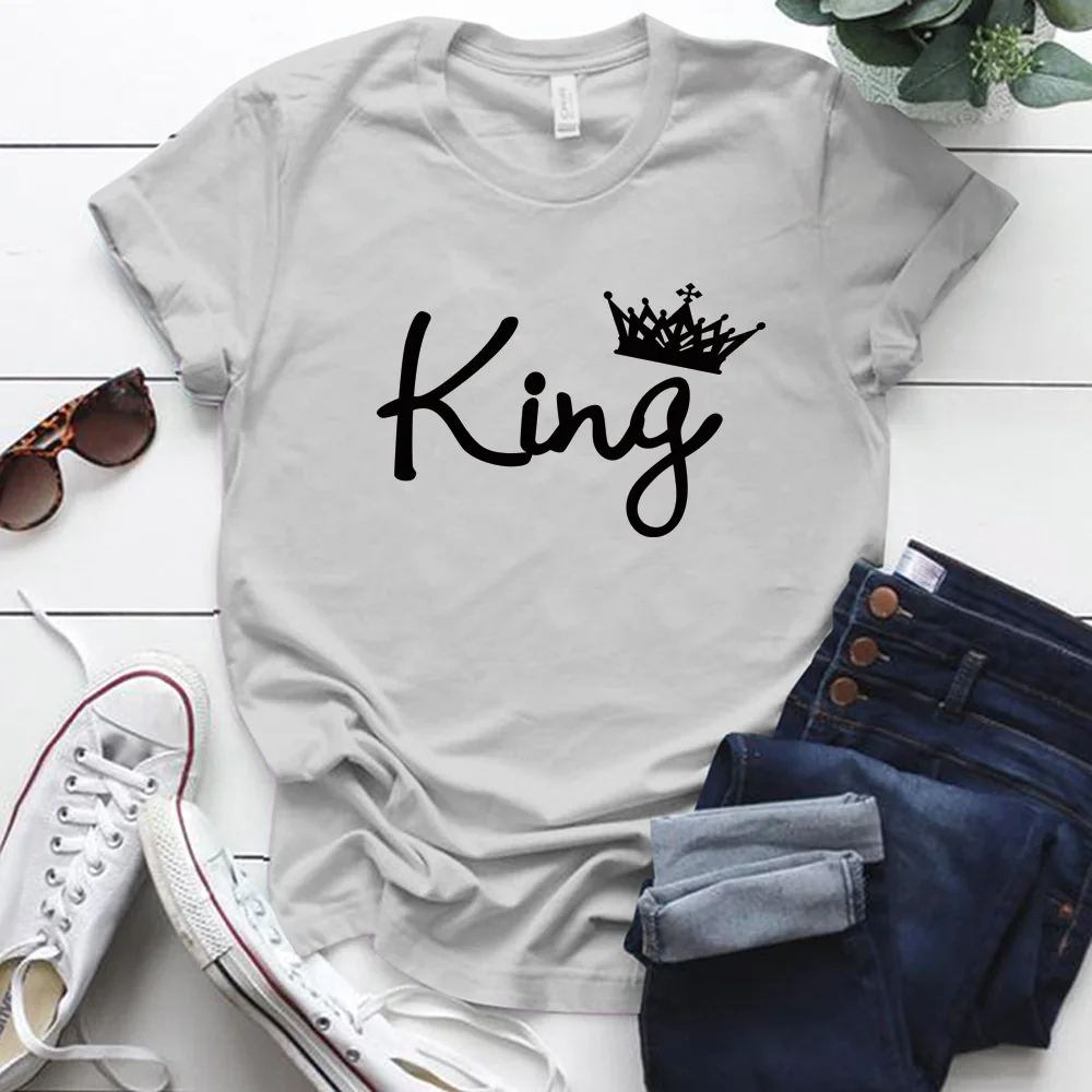Одежда для пар топы с принтом букв короля размера плюс футболка для женщин короткий рукав лучший подарок любимому футболка оверсайз Женская