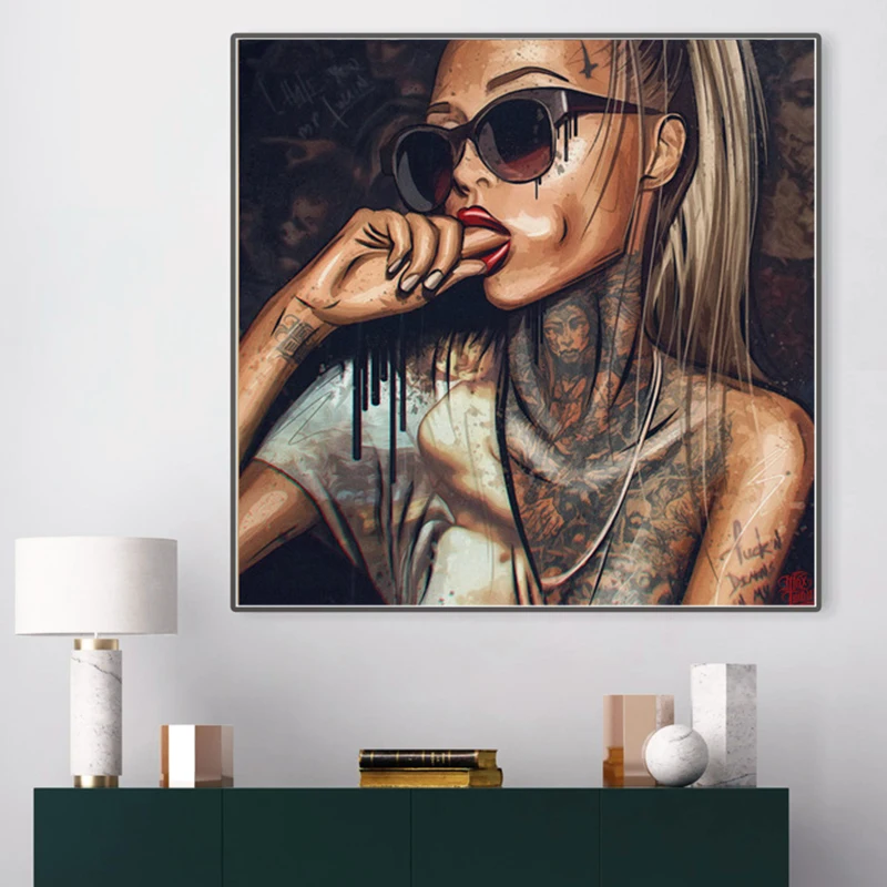Крутая сексуальная девушка тату поп граффити улица Секс Женщины картина маслом холст плакаты принты Куадрос настенное искусство картины для гостиной