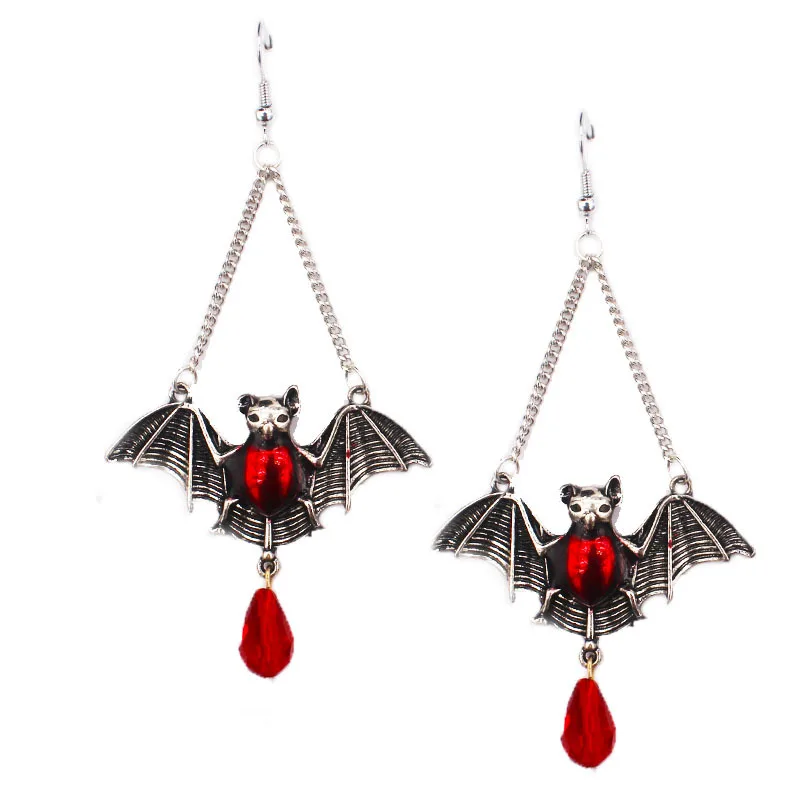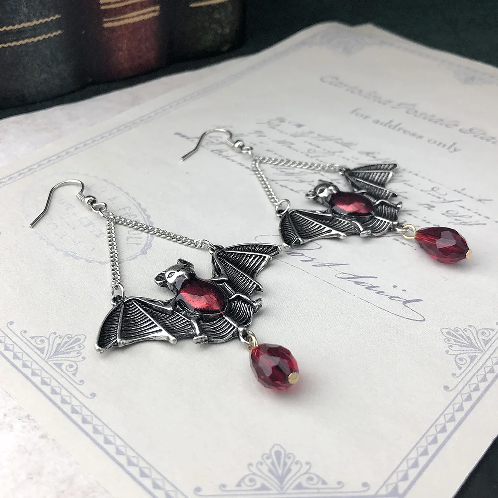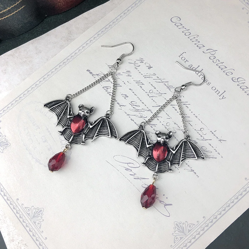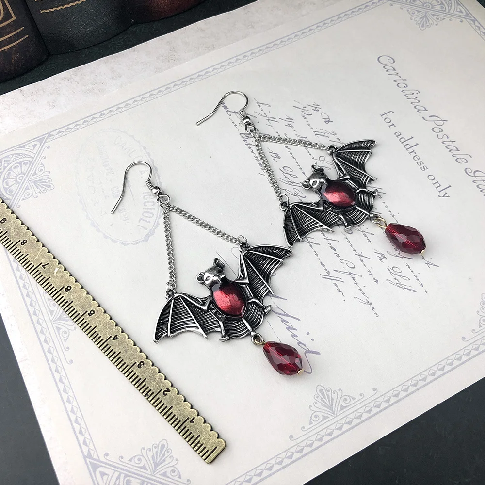 Темные готические серьги-подвески для женщин, крупные красные вампирские летучие мыши, красные капли крови, стеклянные кристаллы, мужские серьги, оптовая продажа ювелирных изделий