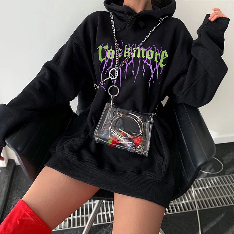 худи оверсайз толстовка женская женские свитера с капюшоном Длинная сумка куртка хип-хоп одежда с буквенным принтом рукавом свитер свитшот женский свитшот толстовки кофта топ одежда аниме