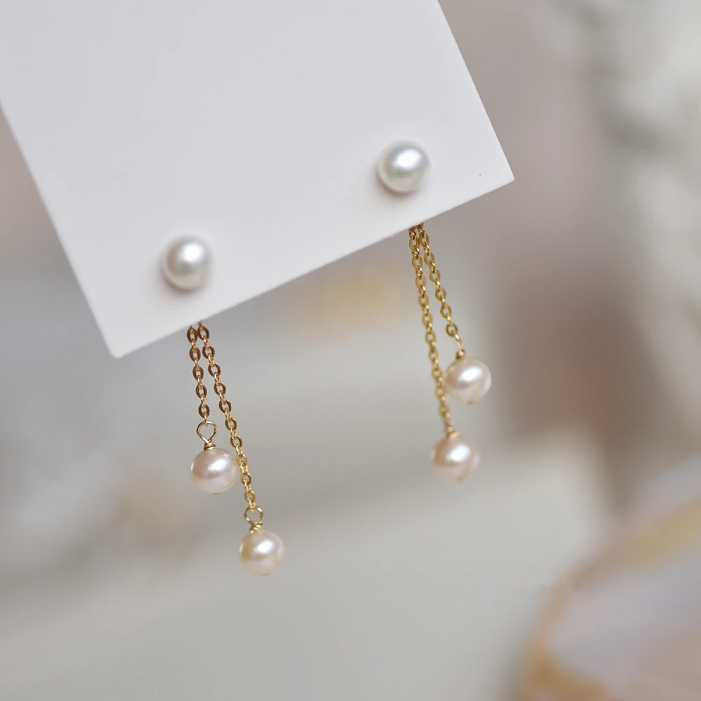 Женские длинные серьги-гвоздики из серебра 925 пробы, с пресноводны...