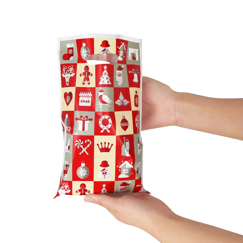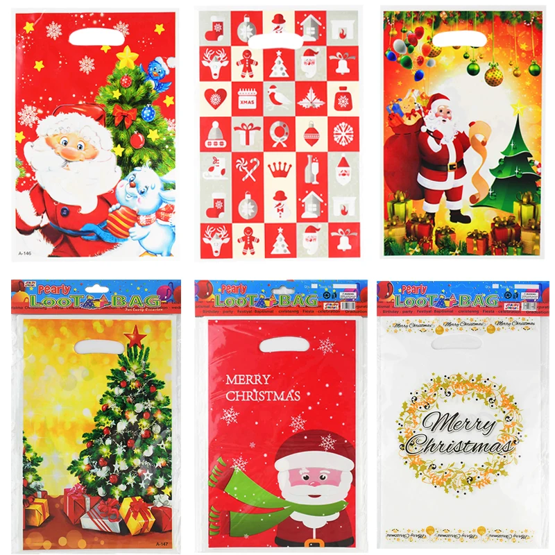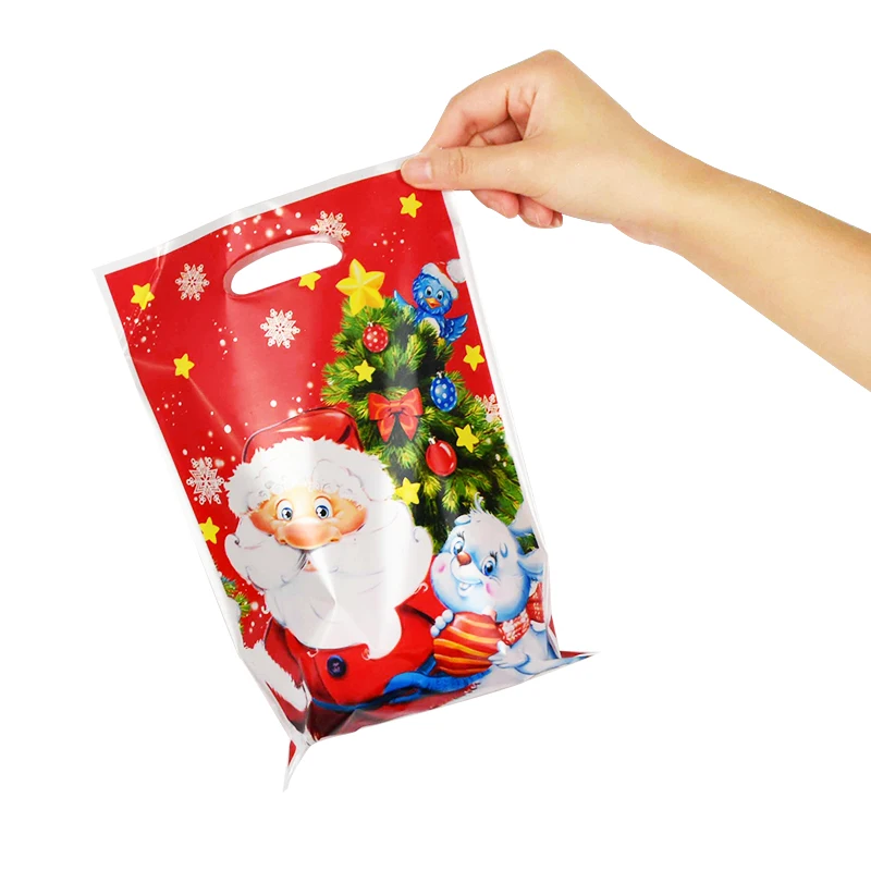 Пакет пластиковый для конфет, с рисунком деда мороза, рождественской елки, 10 шт.