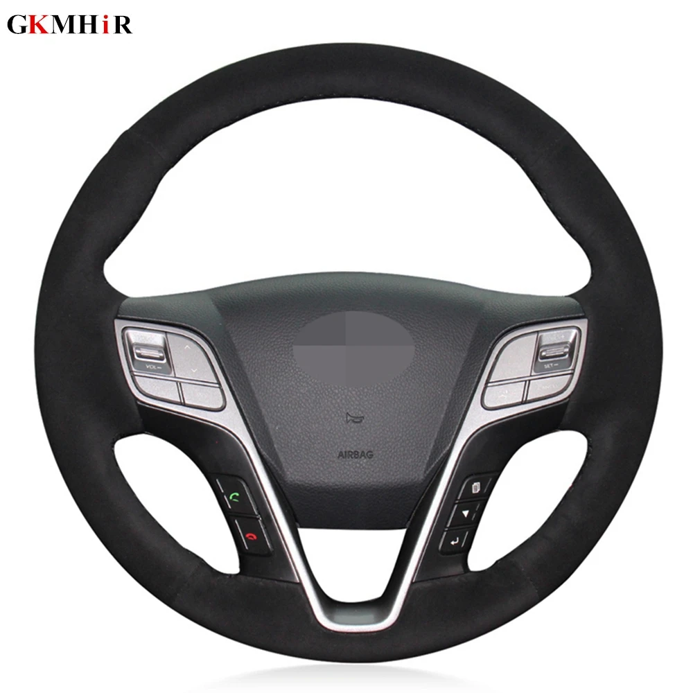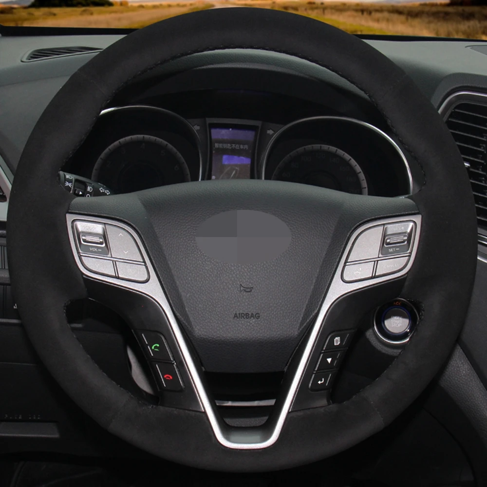 Ручной работы черная замша DIY чехол рулевого колеса автомобиля для Hyundai Santa Fe 2013-2018 ix45 2013 2014 2015 2016 аксессуары