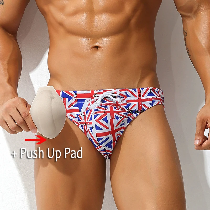 Плавки с заниженной талией, пуш-ап, с принтом, мужские купальные шорты