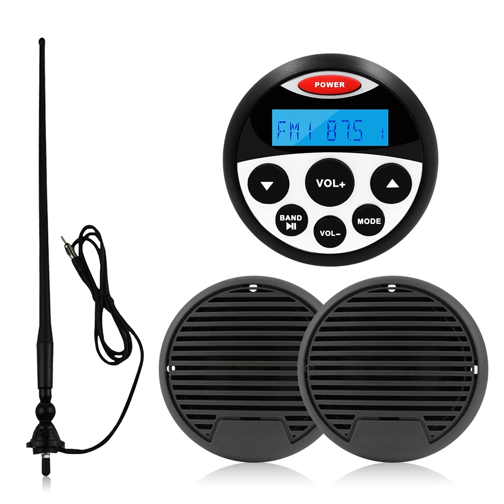 Водонепроницаемый морской стерео аудио приемник Bluetooth радио Автомобильный MP3-плеер для UTV ATV лодки мотоцикла + 3 "Морской динамик + FM антенна
