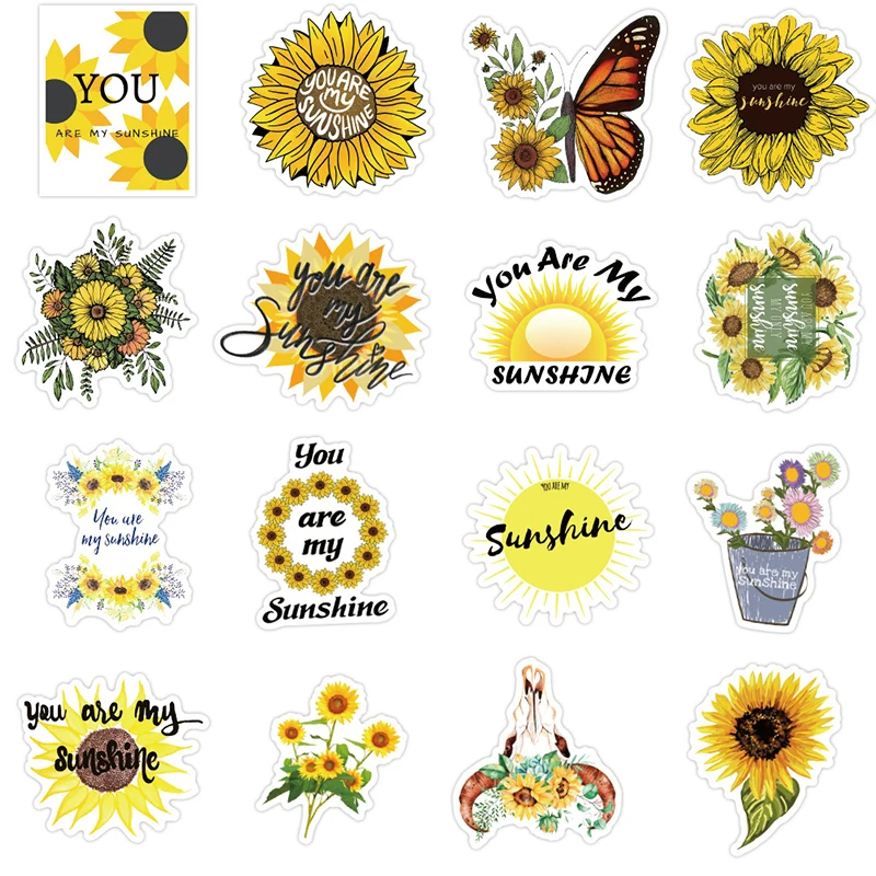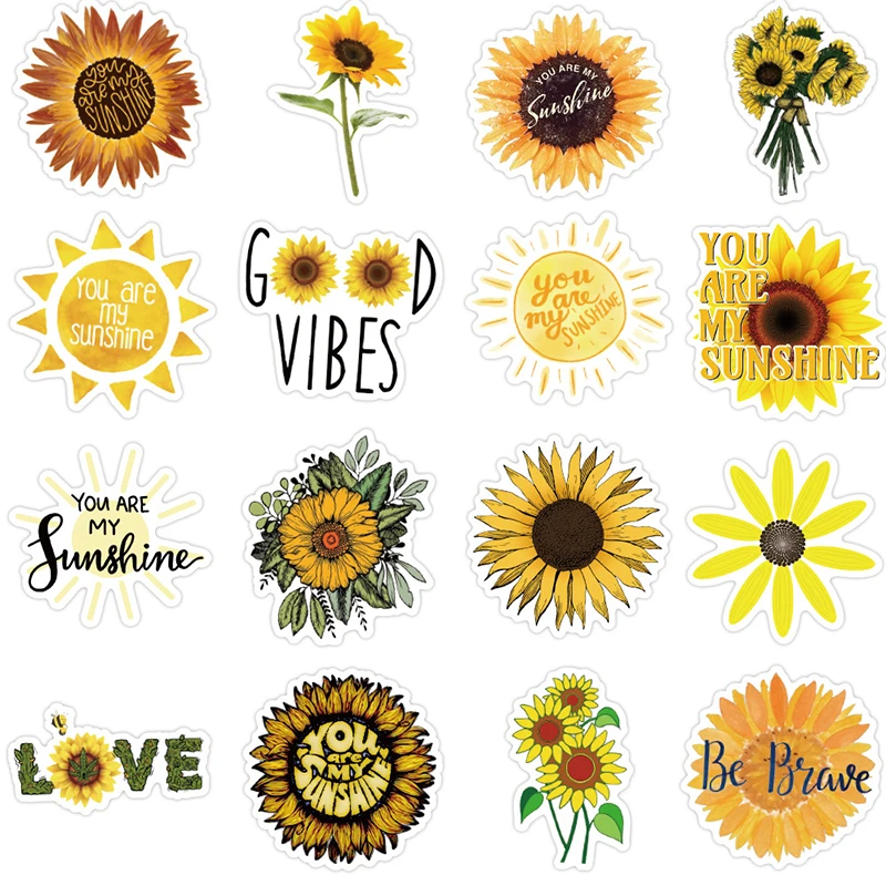 50 шт. завод красивые наклейки с подсолнухами для DIY канцелярские ноутбука СКЕЙТБОРД гитара с рисунком "Подсолнух" Виниловые Автомобильные Наклейки F4