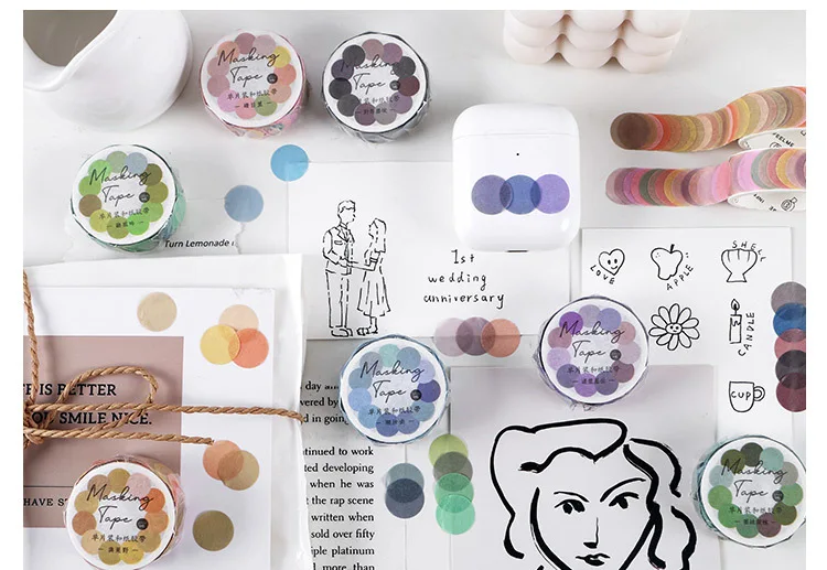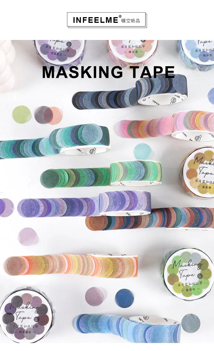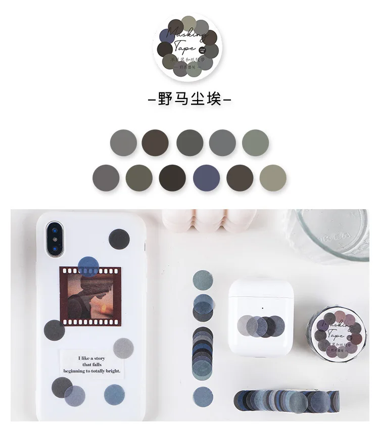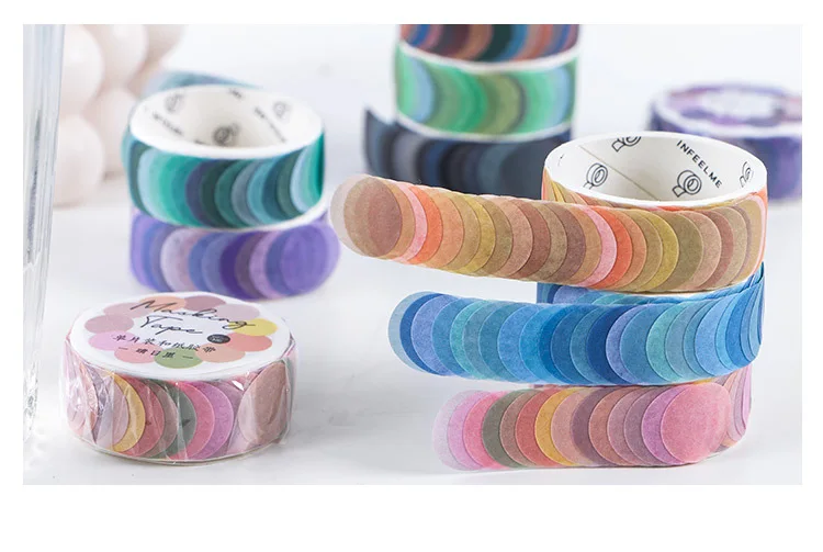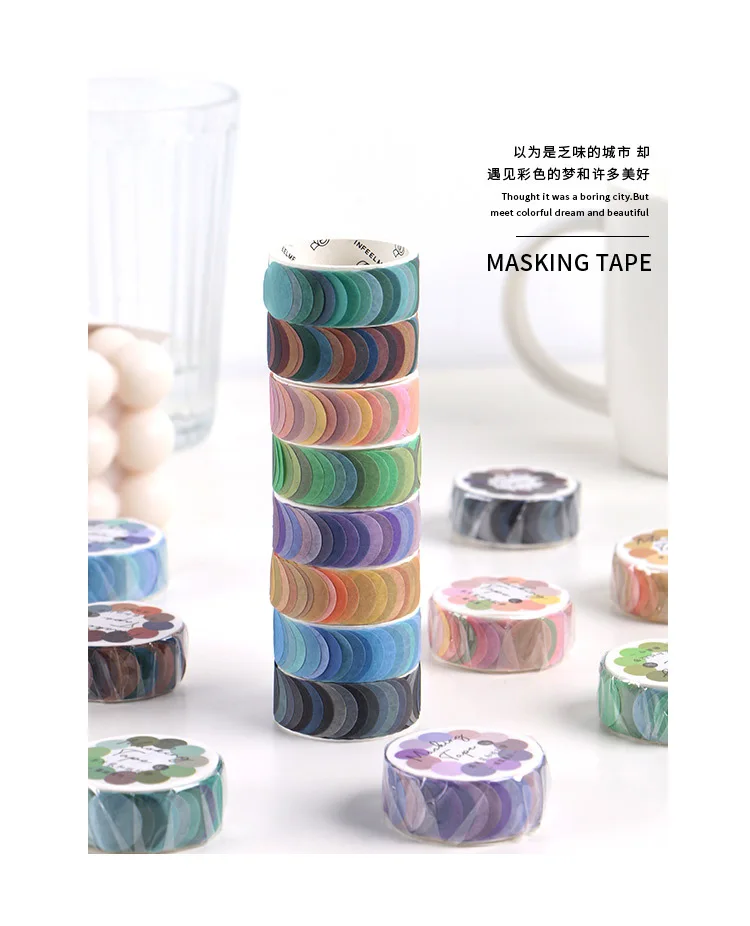 Клейкая лента Morandi Color Dot Washi, круглые наклейки в горошек, декоративные клейкие бумажные ленты для альбом-ежедневник, 100 шт.рулон