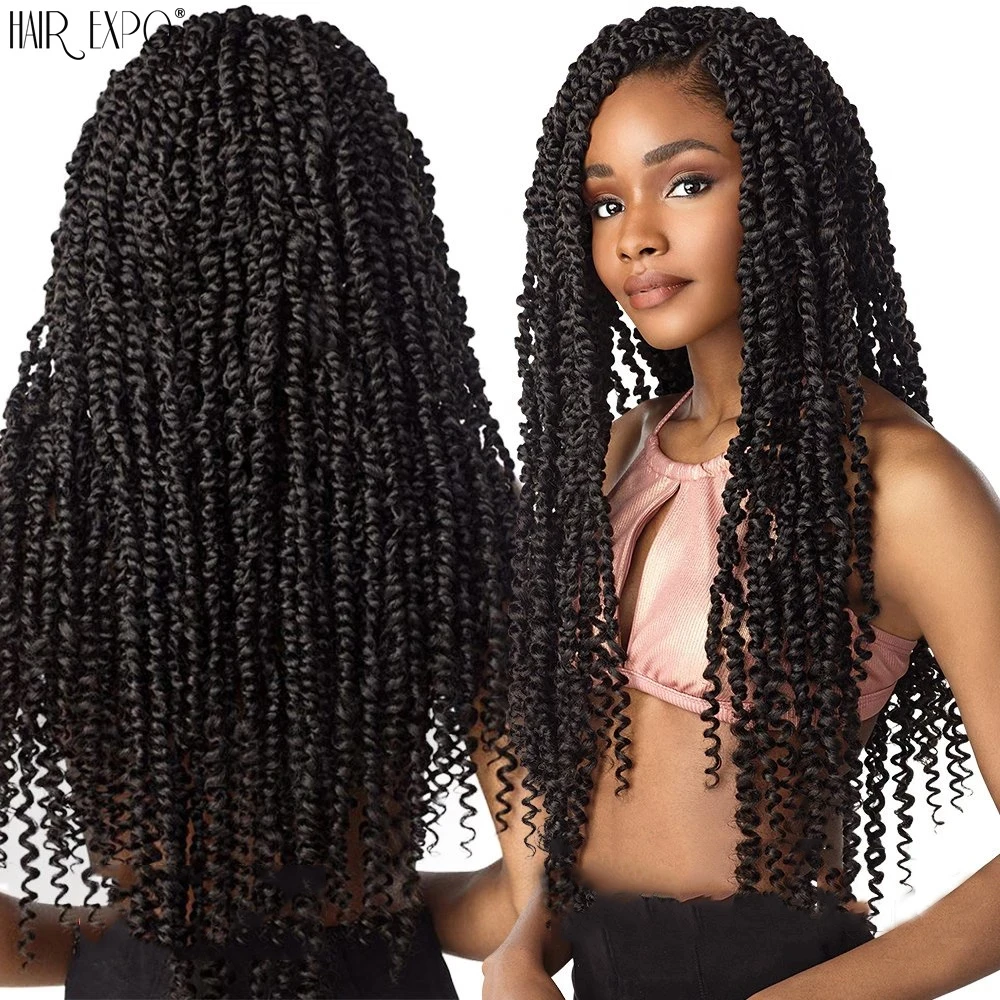 22-дюймовые синтетические волосы для вязания крючком Passion Twist, удлинители волос для вязания крючком, предварительно закрученные волнистые волосы для черных женщин, выставка волос