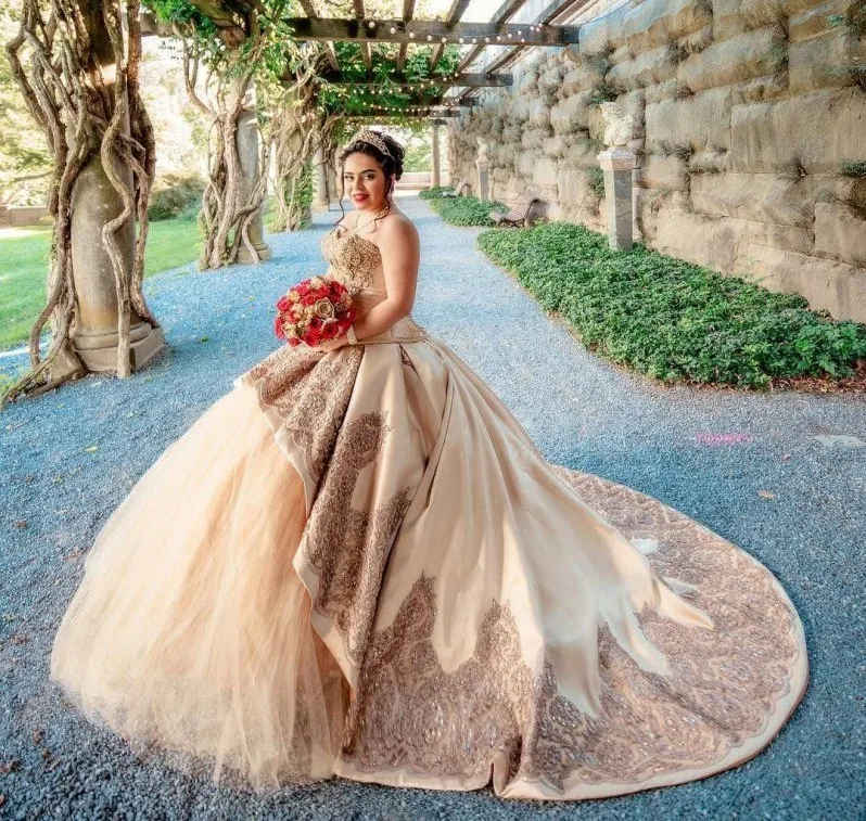 Женское платье с кружевной аппликацией, золотистое платье для выпускного вечера, со шлейфом, 16 цветов, 15 лет