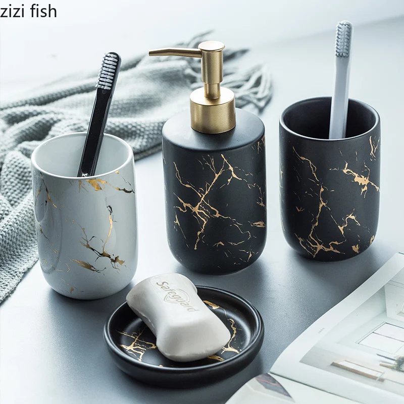 Набор аксессуаров для ванной комнаты, керамика, матовое золото, дозатор мыла, держатель для зубных щеток, стакан, мыльница, роскошный набор для мытья