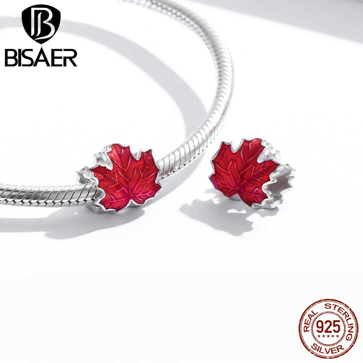 Бусины из серебра 925 пробы с кленовыми листьями
