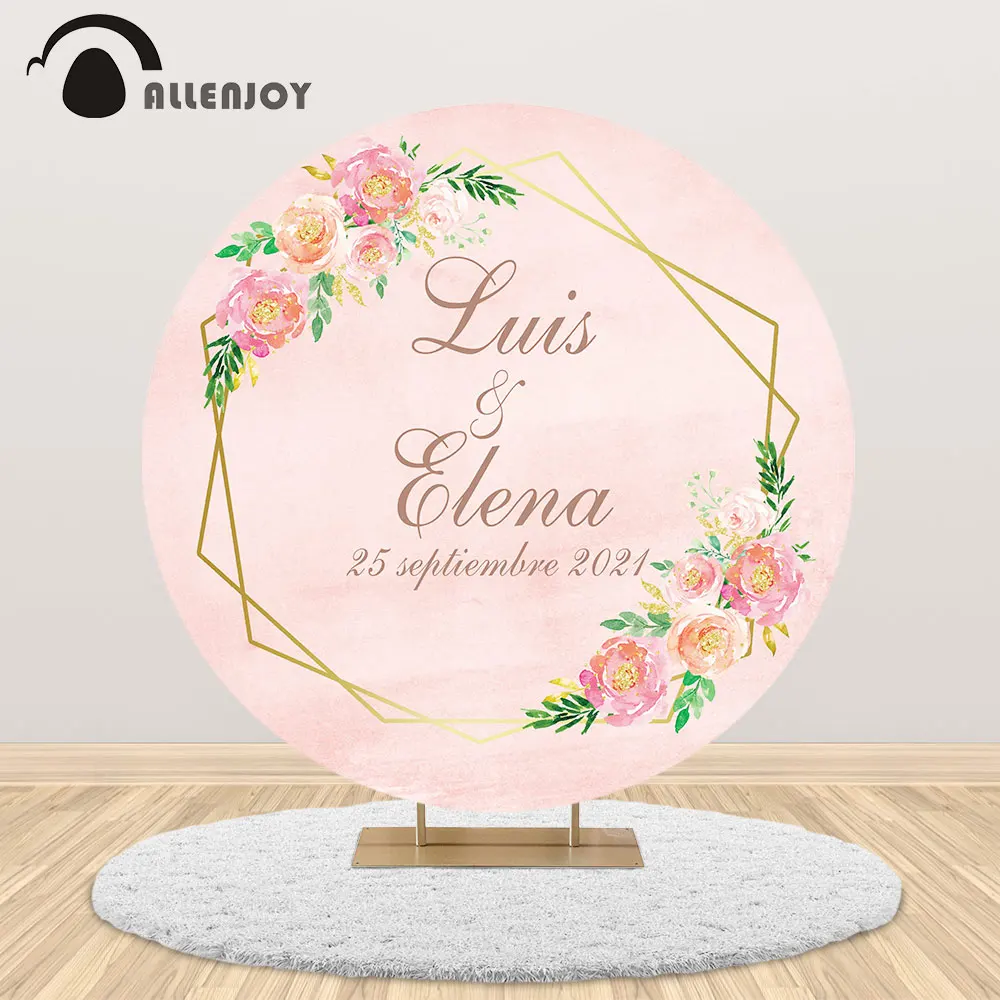 Фон Allenjoy с изображением золотых цветов, круглых кругов, для свадебной вечеринки, свадебной Фотокабины