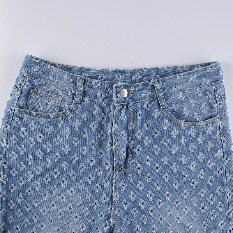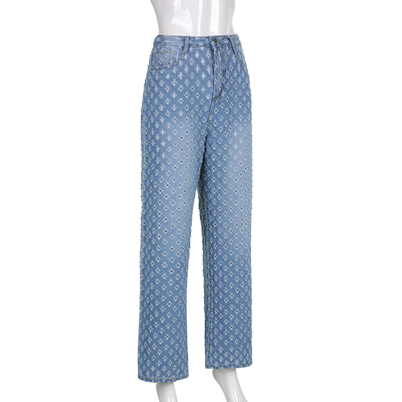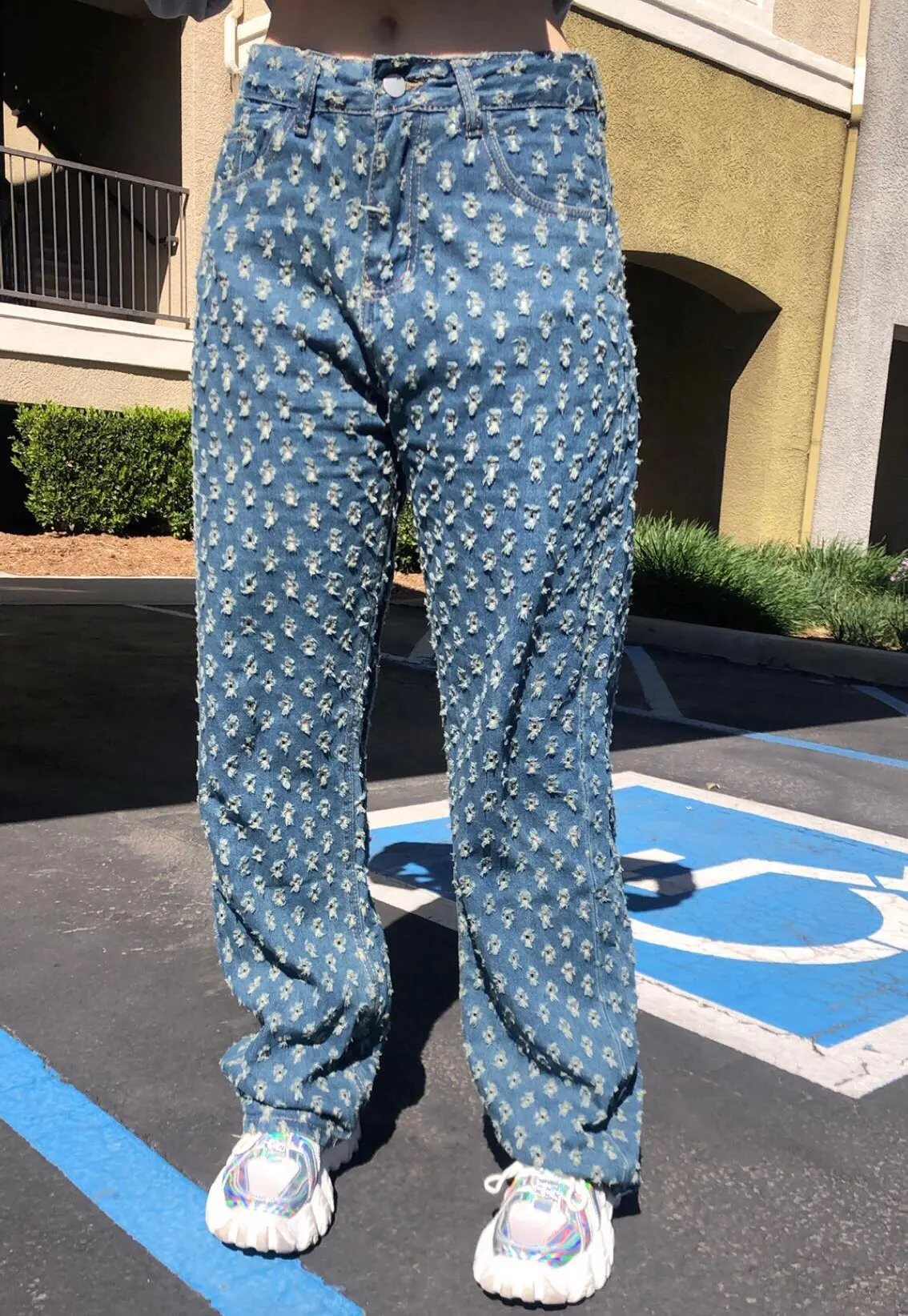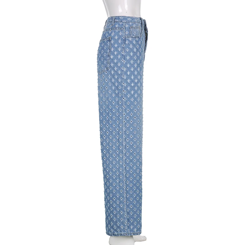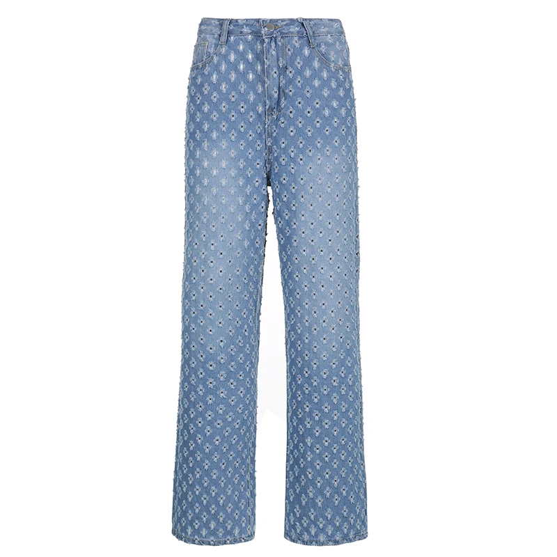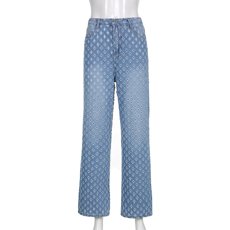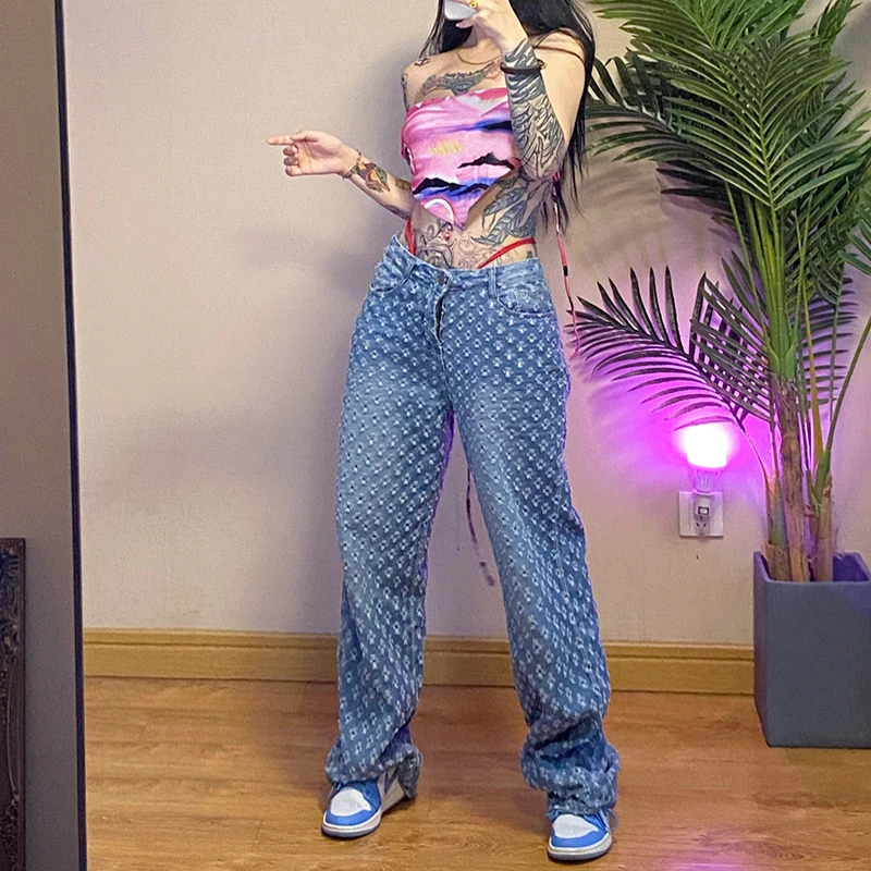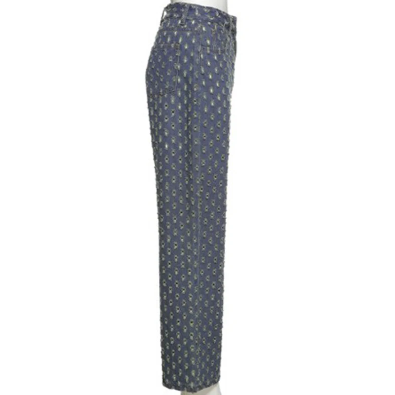Weekeepмодные клетчатые открытые уличные джинсы, женские Клубные прямые брюки с высокой талией и пуговицами, корейские мешковатые джинсовые штаны с дырками