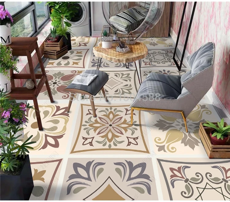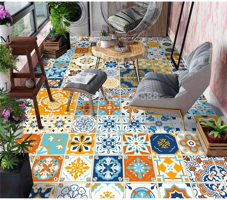 Пользовательские самоклеющиеся обои для пола 3D Ретро водостойкие плитки напольная живопись мозаика балкон кухня ванная комната ПВХ наклейки
