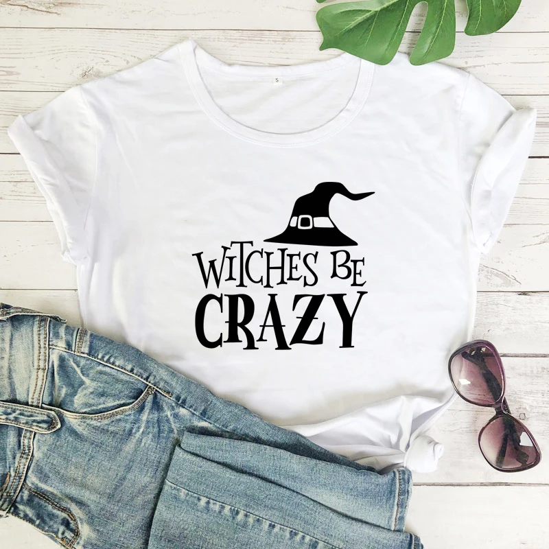 Женская футболка с рисунком ведьмаков Be Crazy, забавная женская футболка, осенняя футболка с коротким рукавом и графическим рисунком, футболка