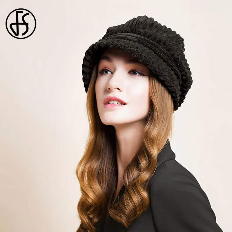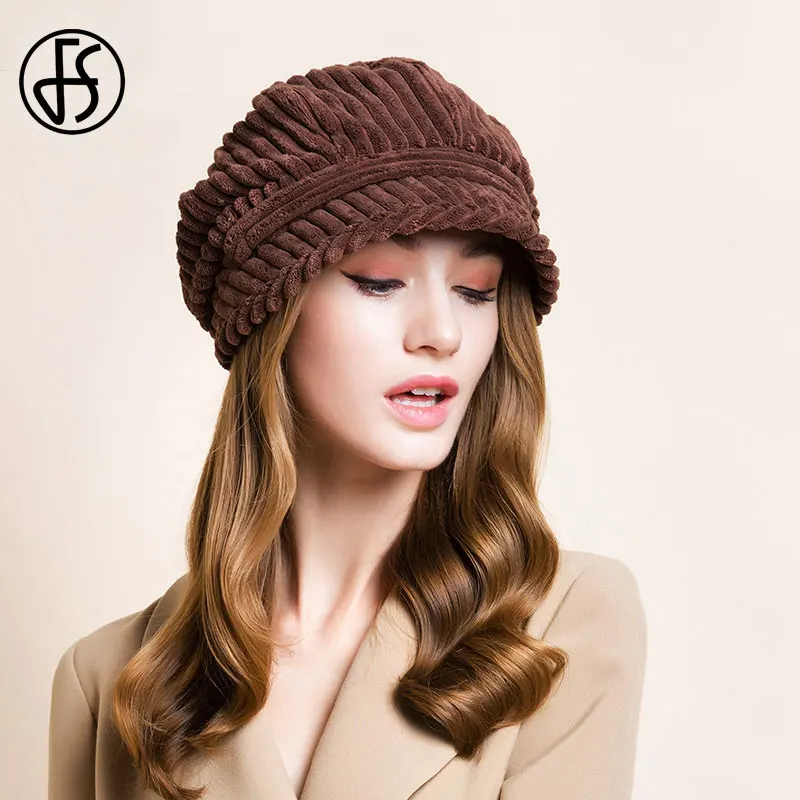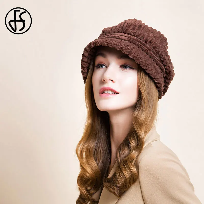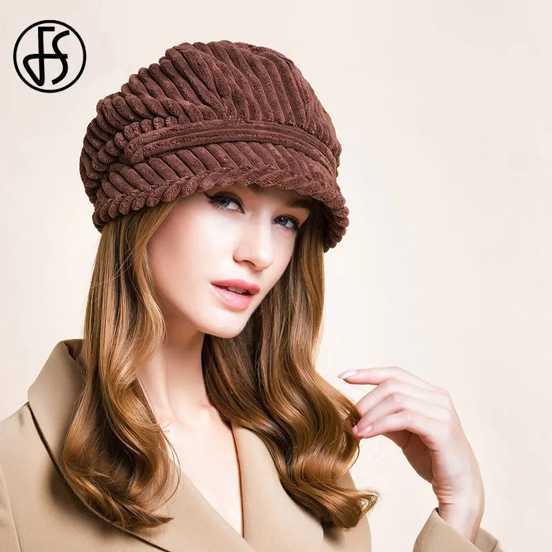 Женский винтажный вельветовый берет FS, белая шапка-восьмиугольная шапка, винтажный вельветовый берет черного и коричневого цвета, для осени и зимы