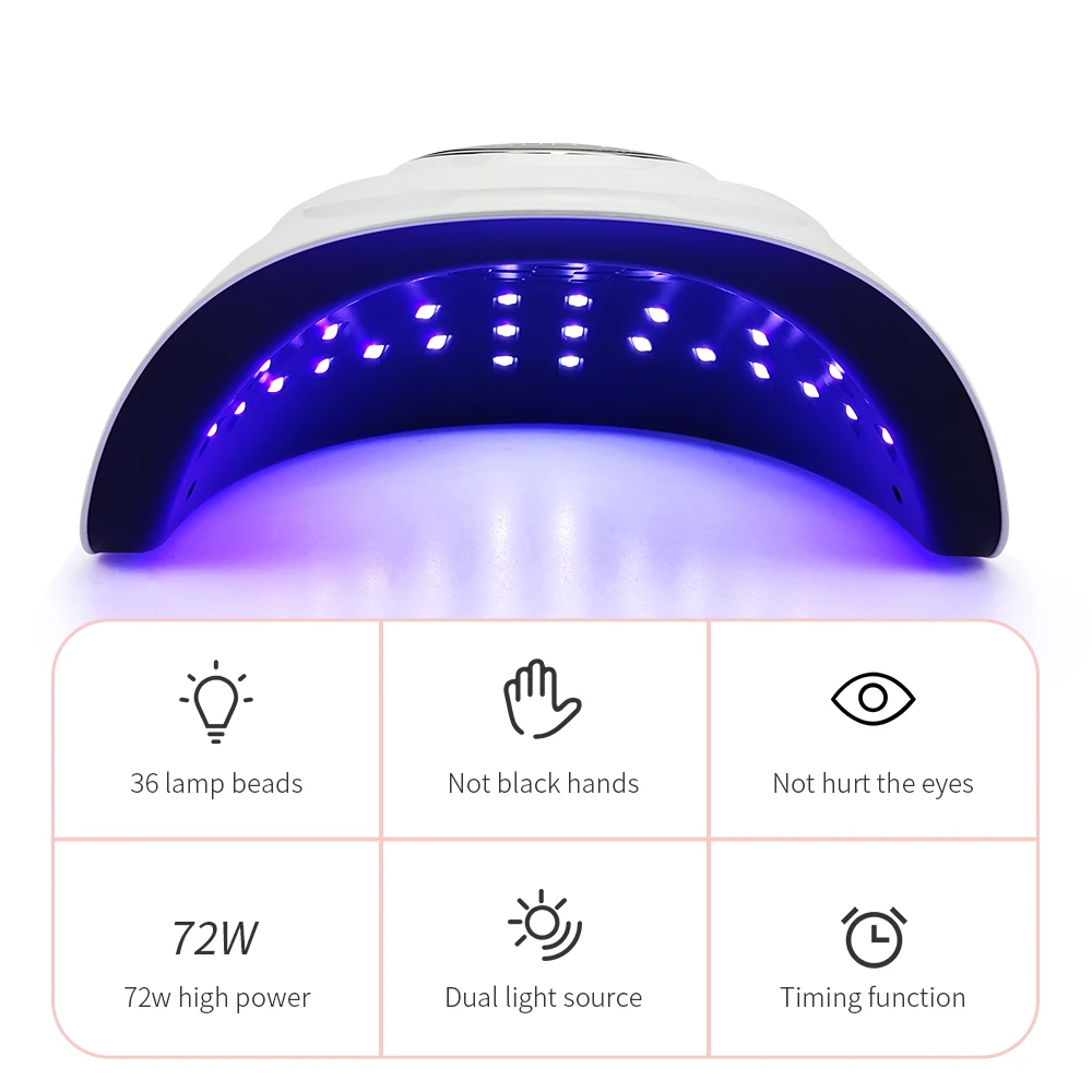 Эффективная Сушилка для ногтей, 907236 Вт Светодиодная УФ-лампа для ногтей, таймер, светодиодный дисплей для всех гелей, с датчиком 90s60s30s10s