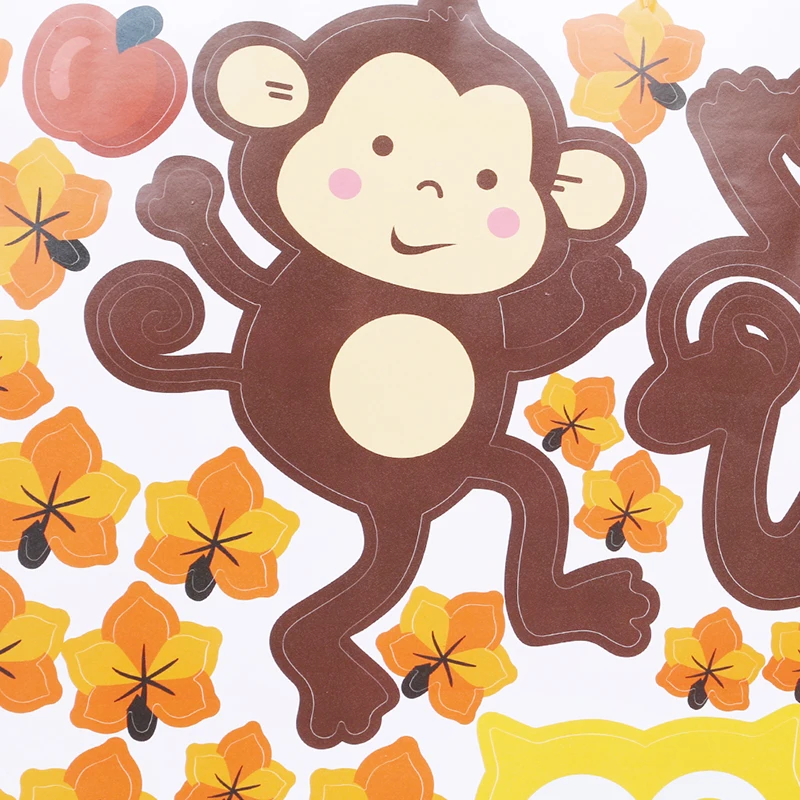Милый мультяшный лес ветка Животные Сова Обезьяна Медведь Олень наклейки на стену комнаты мальчики девочки дети спальня домашний декор