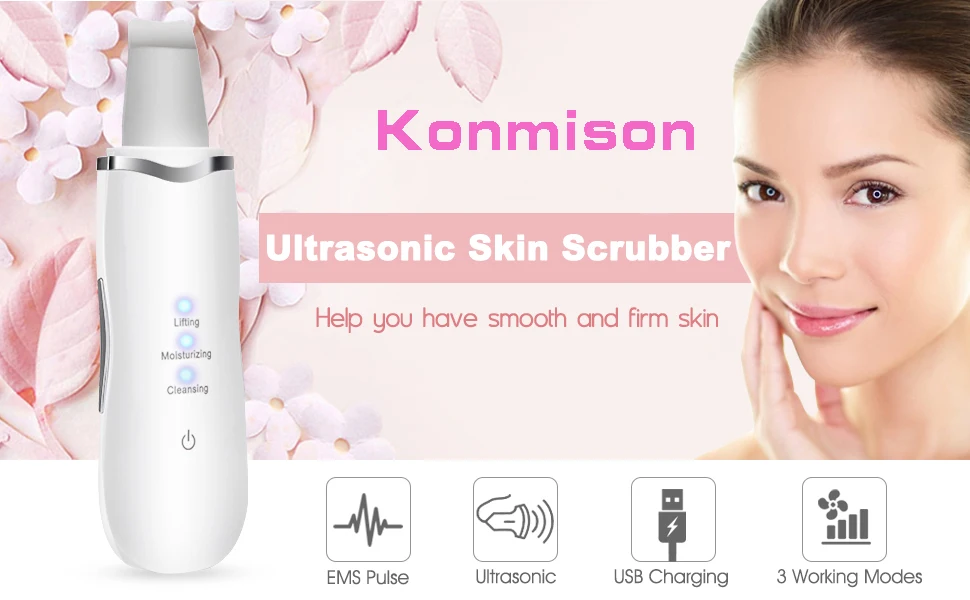 -Несколько функций: Этот скруббер работает через ультразвуковую вибрацию, которая может углубиться в поры, удалить грязь, старение клеток и корней.Он может эффективно удалять акне, угри, устранять морщины и кютис laxa, ускорять кровообращение, способствовать метаболизму, разложению меланина и рассеивать пятна.-Три режима работы: Одно нажатие указывает на режим очищения, двойное нажатие переходит в режим увлажнения, а тройное нажатие указывает на режим подъема.-Мягкий рабочий процесс: отсутствие боли или раздражения, покупка без риска, Высокоэффективная Личная служба поддержки клиентов.-Ультразвуковая Вибрация 24000 Гц в секунду. Импорт аниона облегчает удаление грязи с вашей кожи и проникает в питательный раствор.-Перезаряжаемый: при первом использовании, пожалуйста, заряжайте его не менее 5 часов.Затем для следующей зарядки требуется всего 3 часа.Он может продолжать использовать в течение 2 часов после полной зарядки. При использовании 2 - 3 раза в неделю вы становитесь еще красивее.