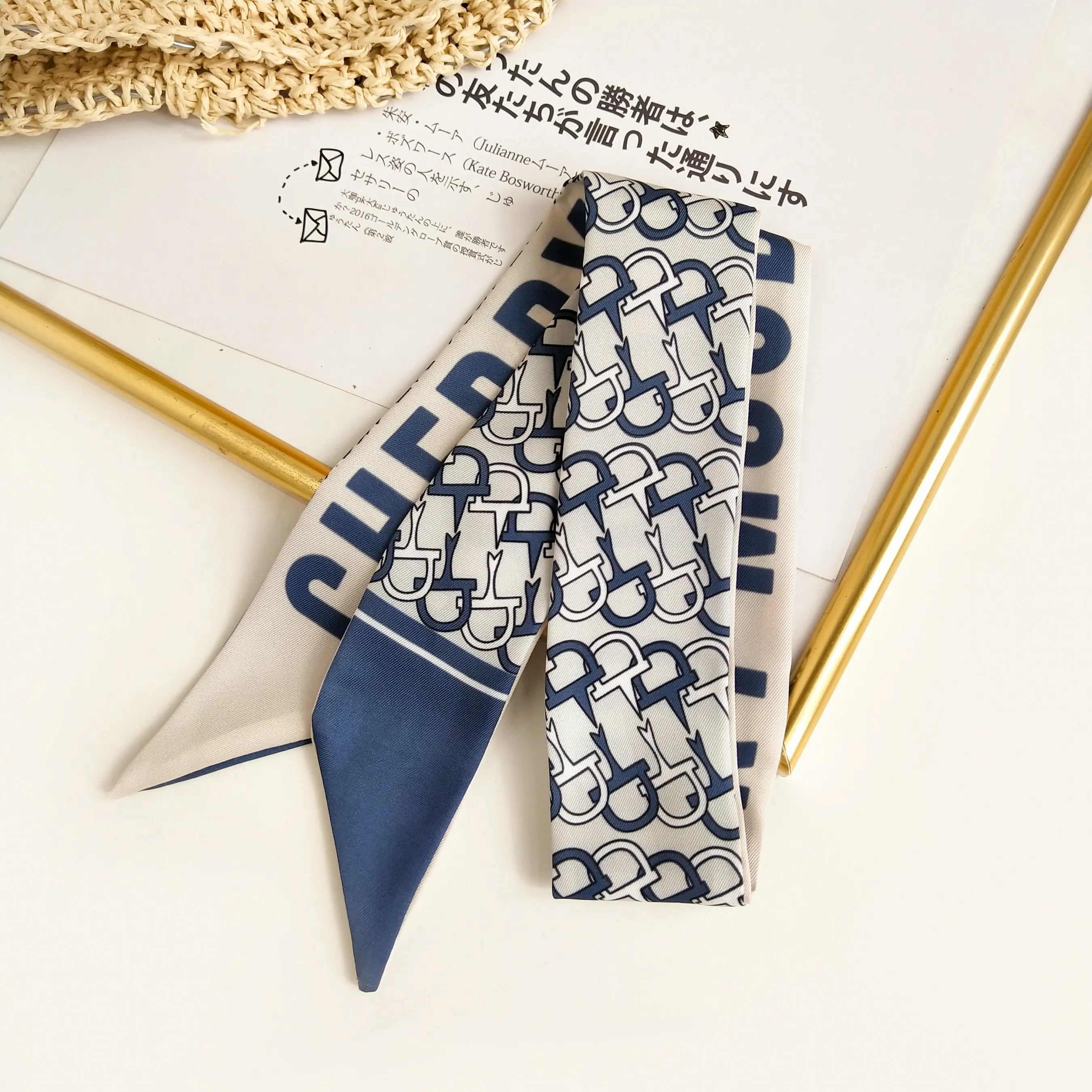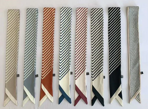 Модный атласный шелковый шарф с принтом в полоску для женщин 2020, ремешки с ручками, узкий длинный шарф, маленькие ленты для волос, аксессуары