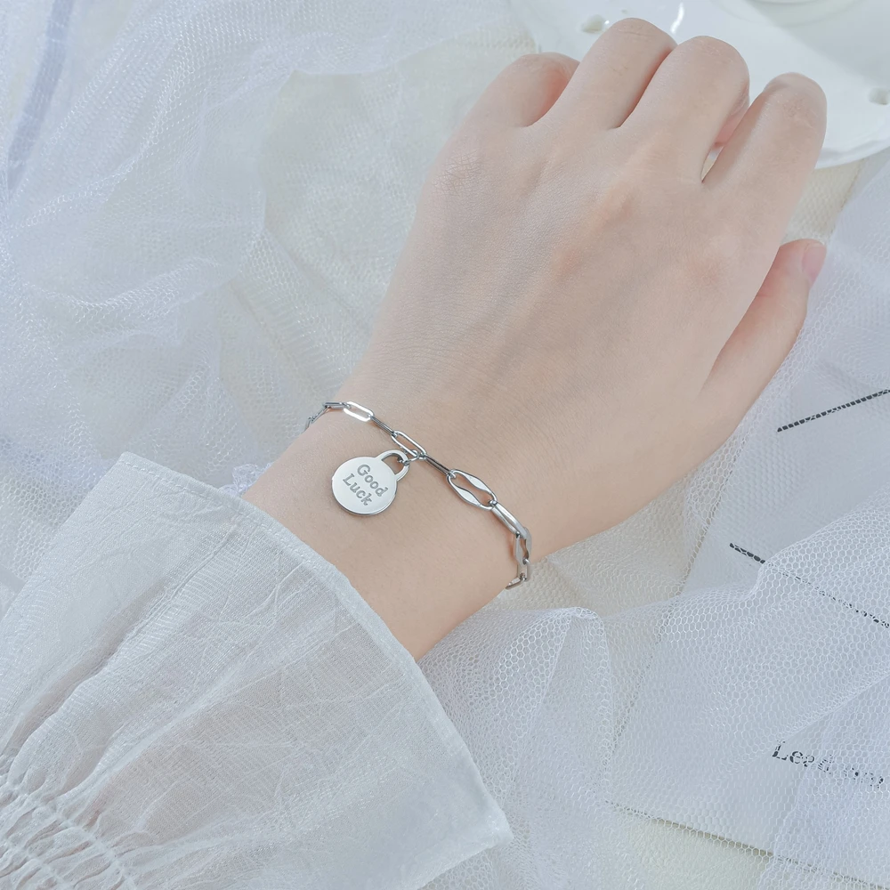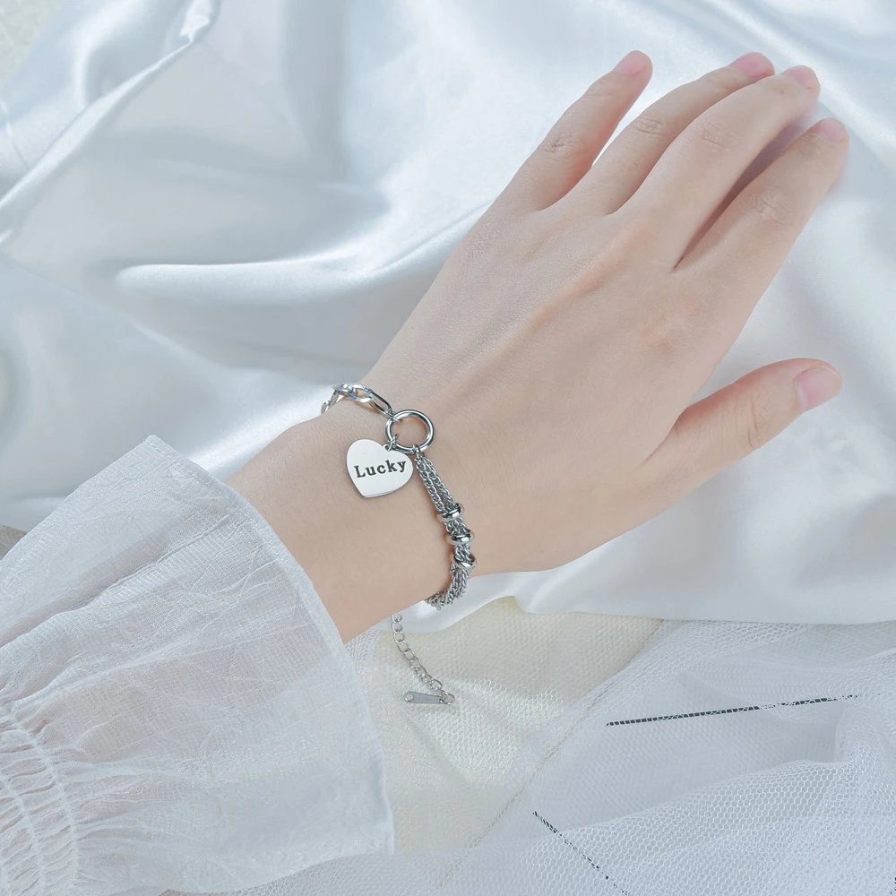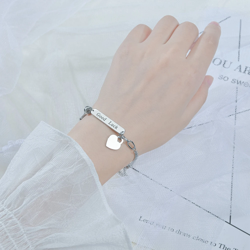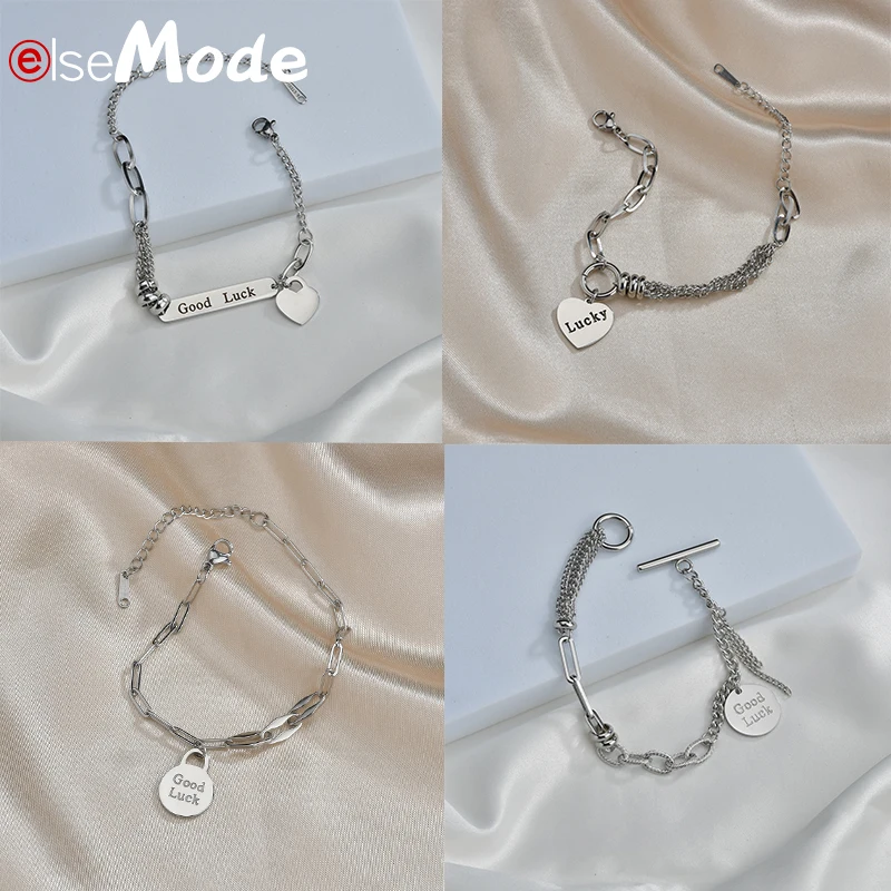 Модный браслет на удачу ELSEMODE, круглый кулон в форме сердца, персонализированный браслет из нержавеющей стали с гравировкой имени для женщин и мужчин, ювелирные изделия, подарок