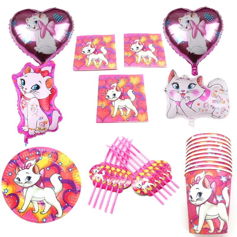 Мари кот тема шар посуда бумажный стаканчик, тарелка салфетка Баннер Дети Девочка День рождения Свадьба Baby Shower украшения принадлежности