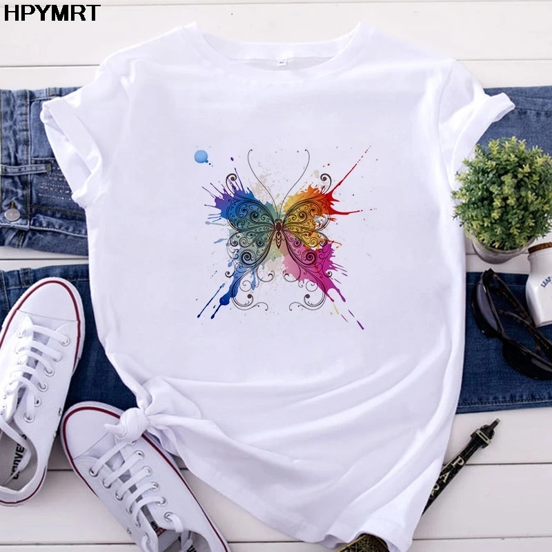 Женская футболка с принтом бабочки, топы, футболки с коротким рукав...