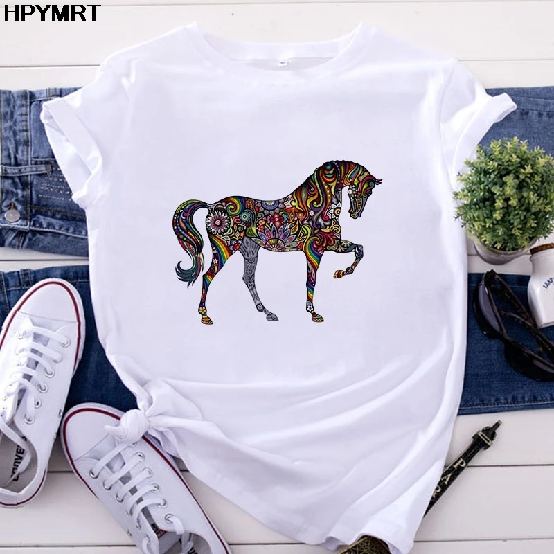 Футболка женская с принтом лошади, Повседневная модная Милая рубашк...