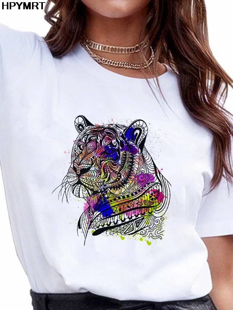 Новая летняя женская футболка с принтом тигра, женская футболка с короткими рукавами, Топы Harajuku, топы с круглым вырезом, Повседневная футболка, женская одежда