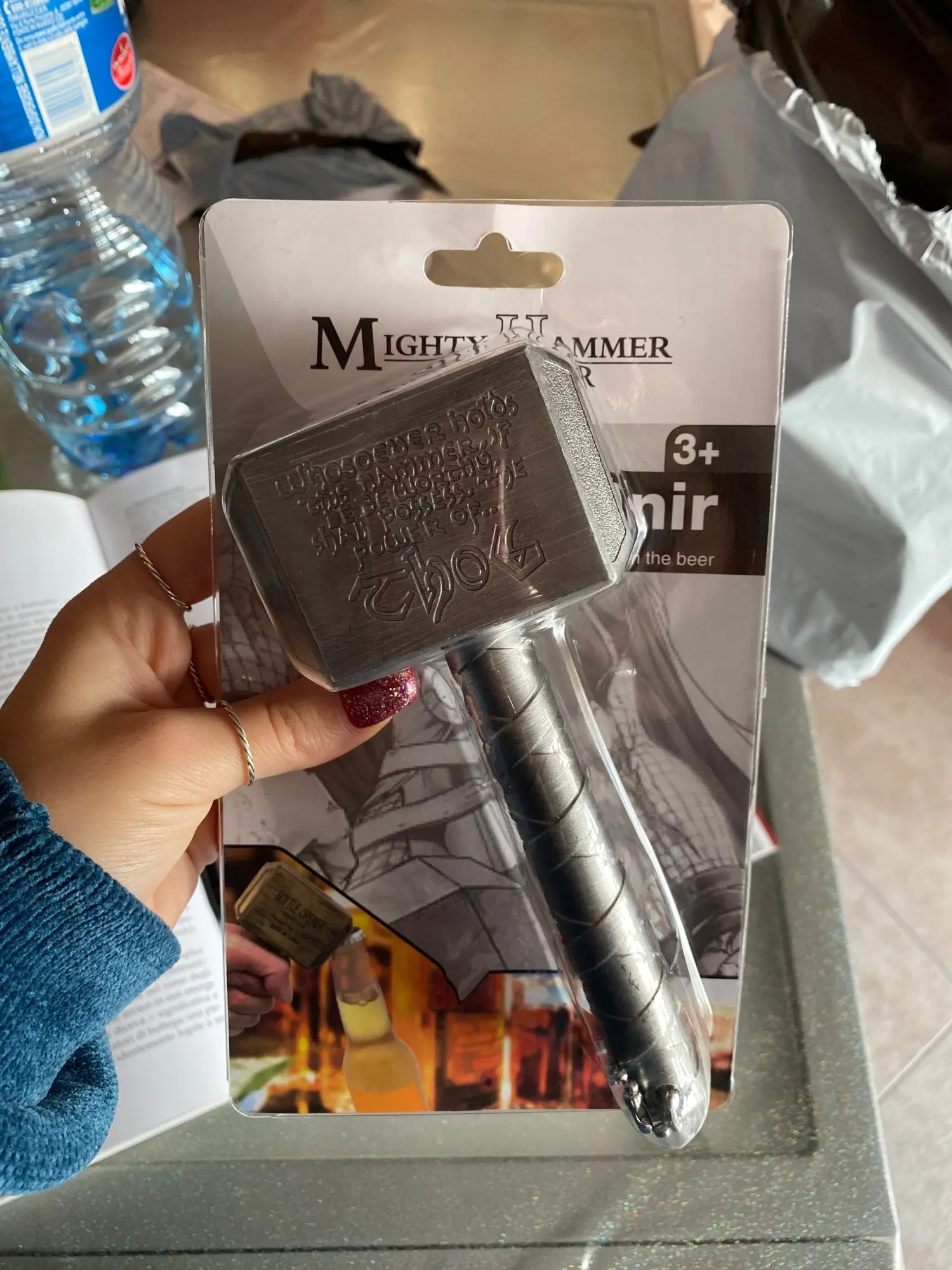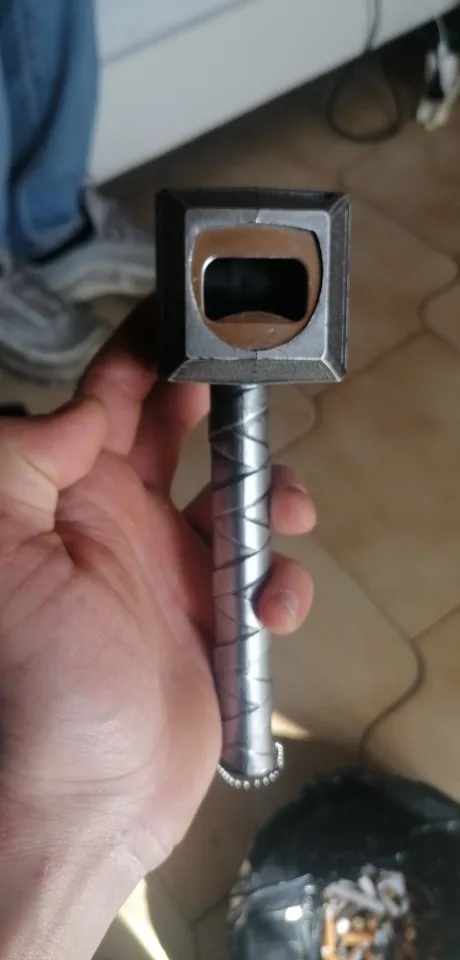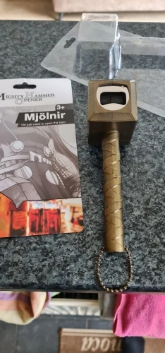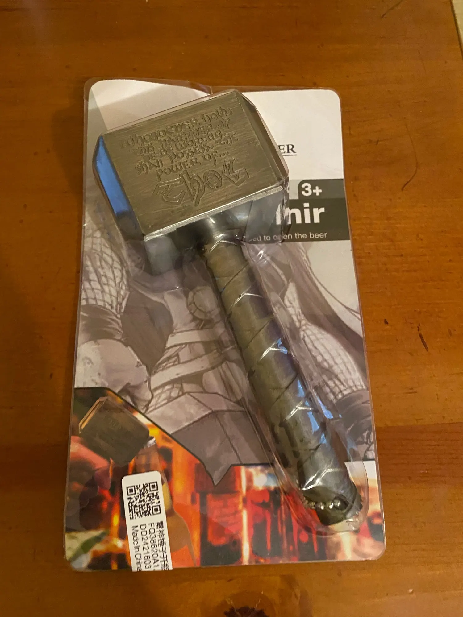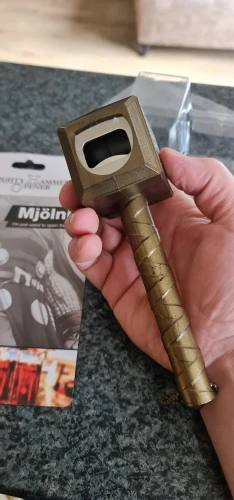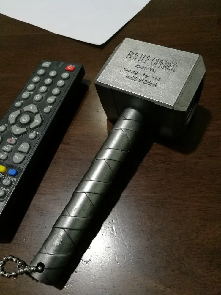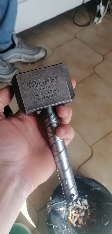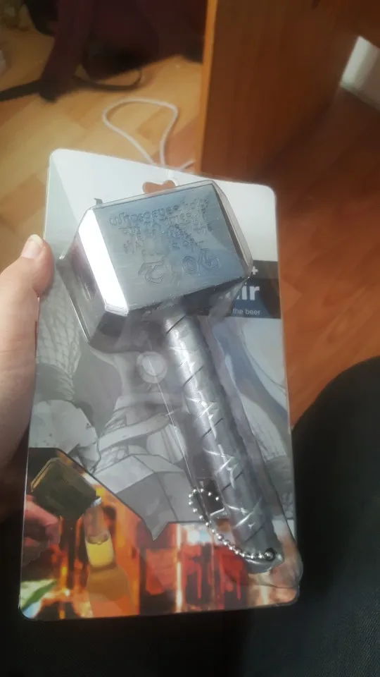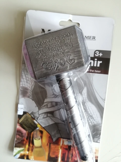 Молоток для фанатов Тора. На одной стороне есть разрез, чтобы открыть бутылки. На maza было записано несколько букв в английском деревенском стиле. Супер забавный открывалка.