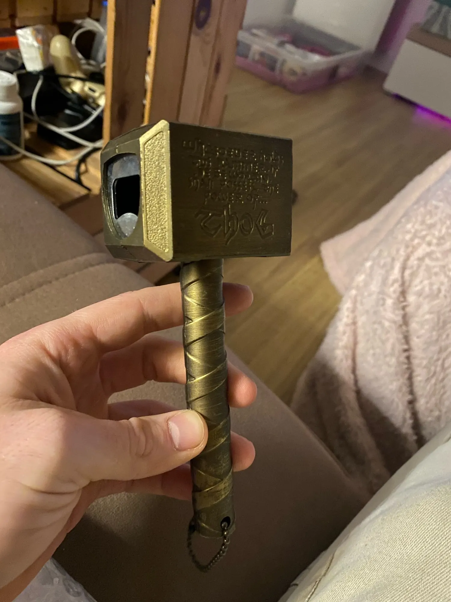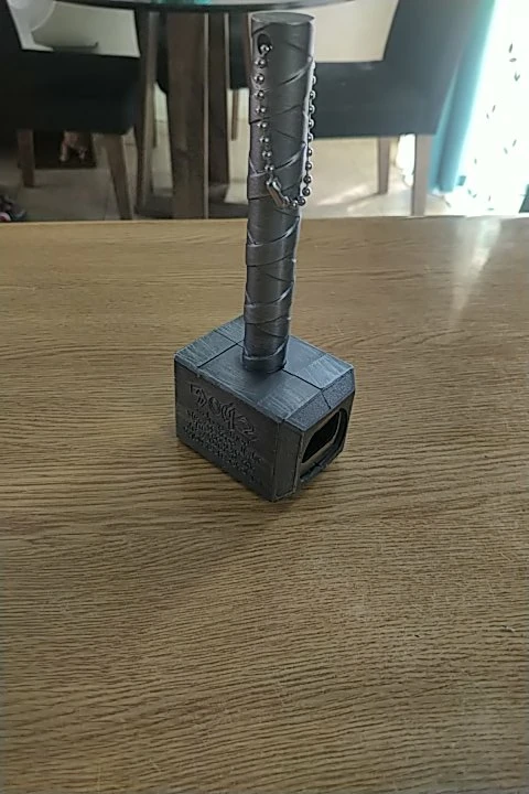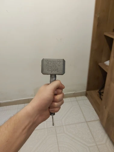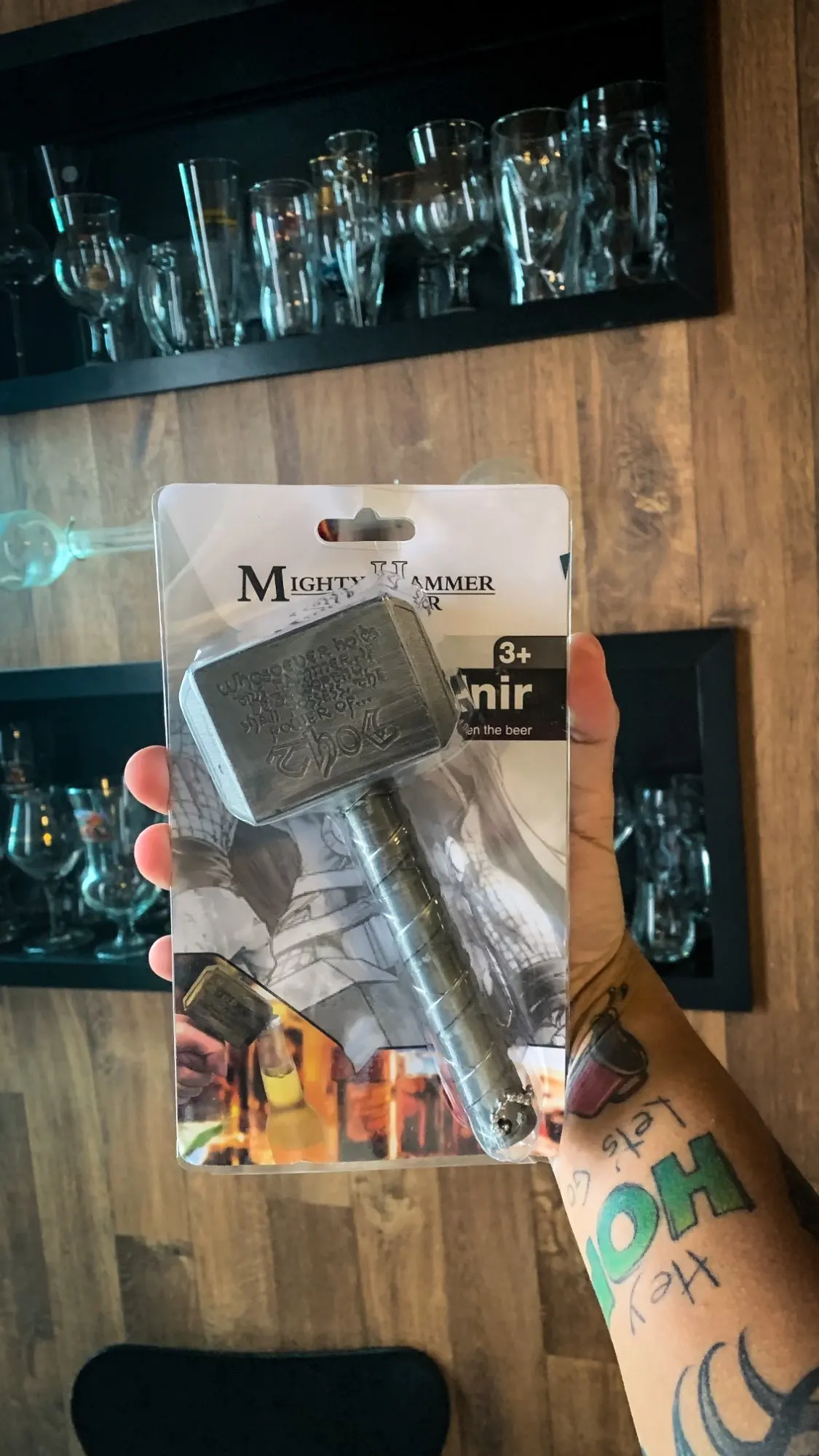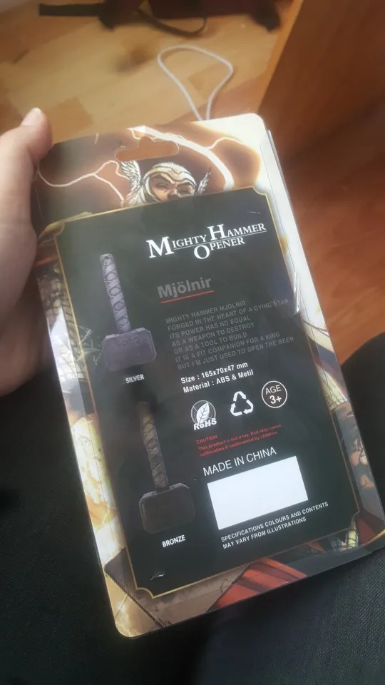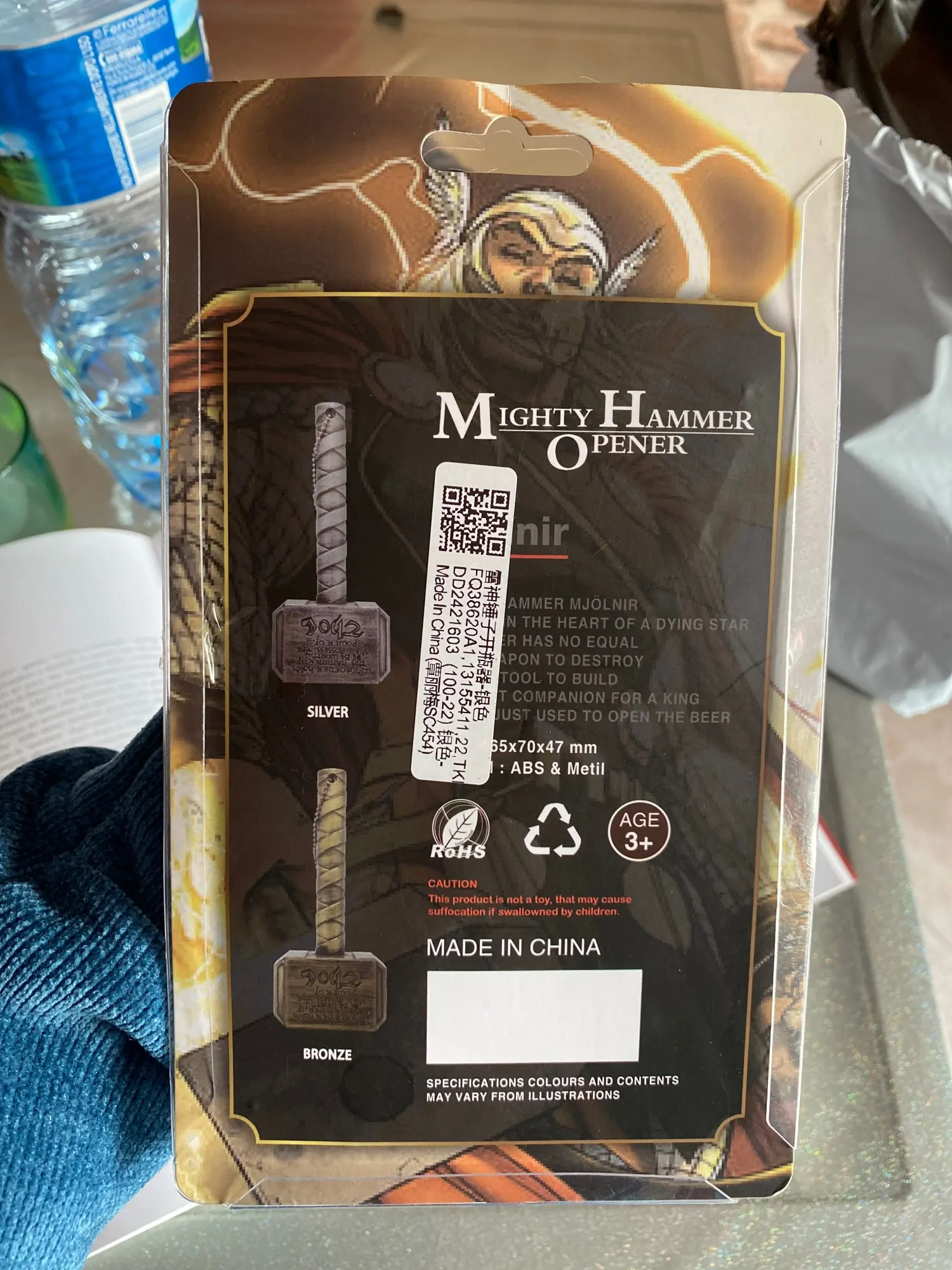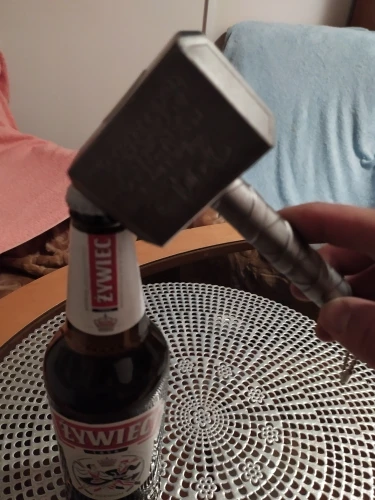 Молоток для фанатов Тора. На одной стороне есть разрез, чтобы открыть бутылки. На maza было записано несколько букв в английском деревенском стиле. Супер забавный открывалка.