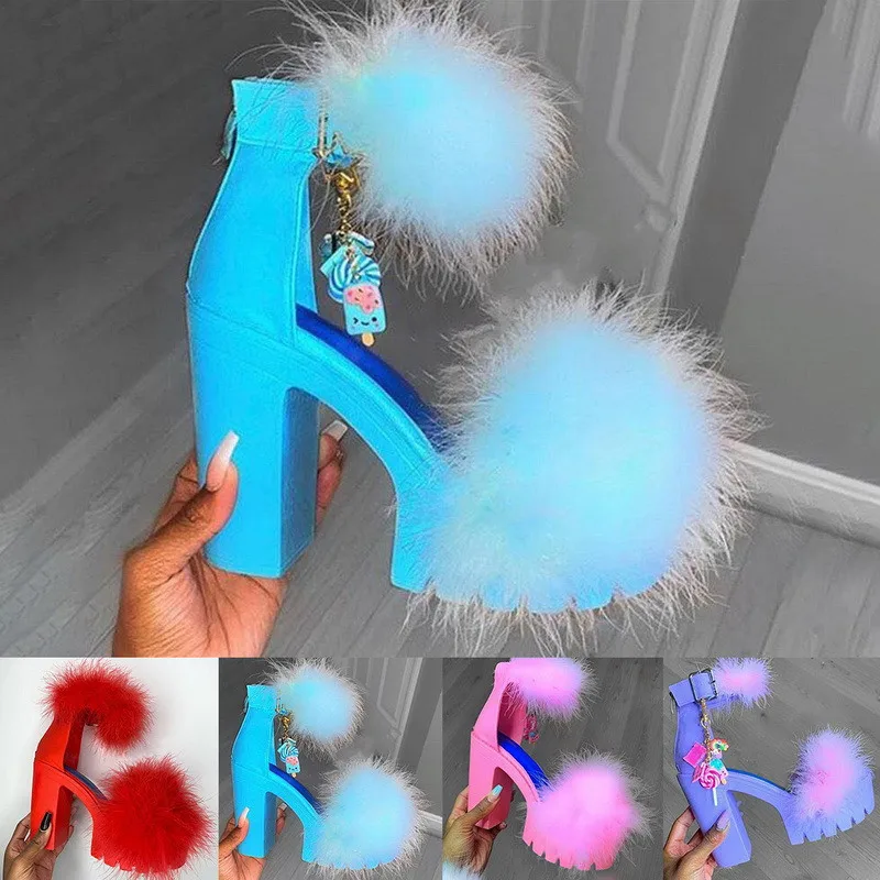 Модные сандалии 2021 летние сандалии плюшевые сбоку на Высоком толс...