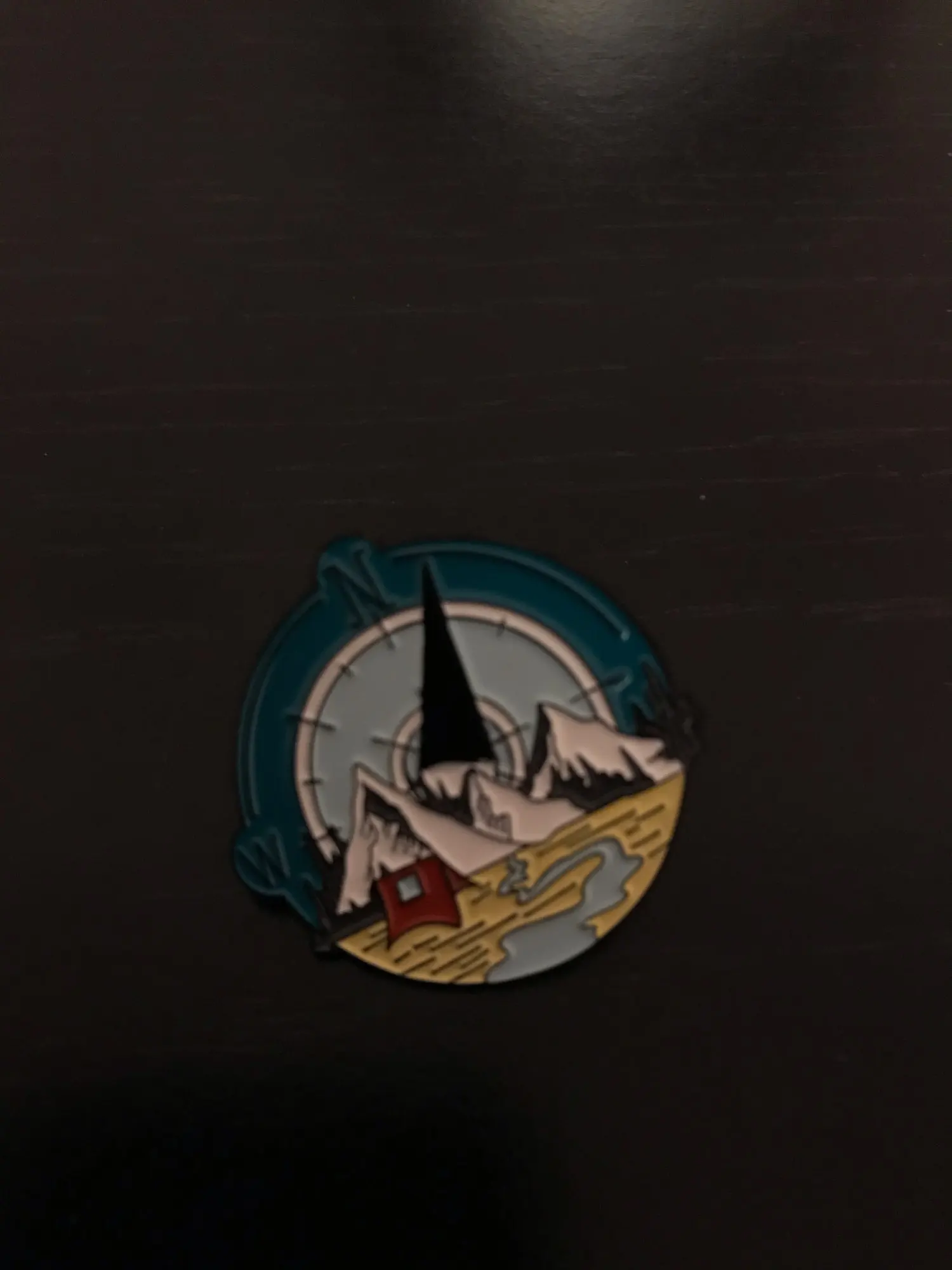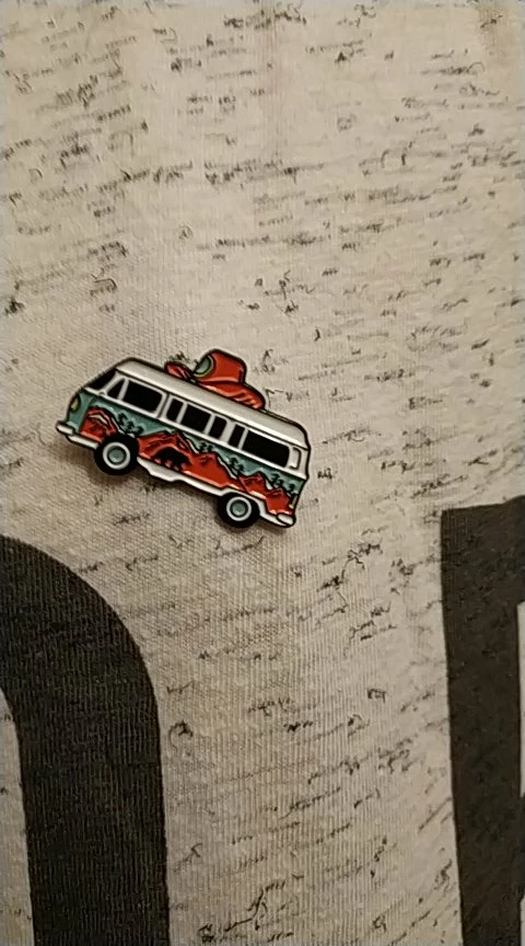 Атмосферно. Здесь не видно, но сам пин не стандартный, сзади он закрепляется не металлической деталью, а прорезиненной. Видно, я невнимательно смотрела, когда покупала. Но в целом, мне это никак не мешает, главное, чтобы держало