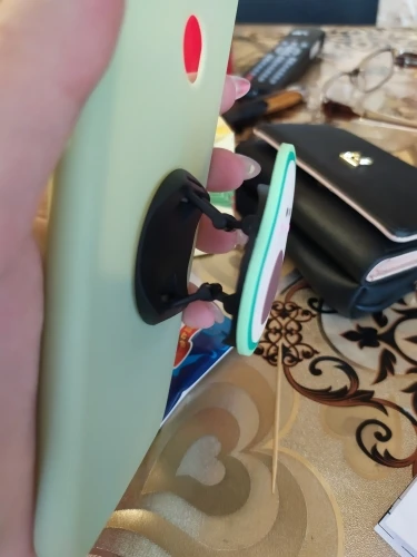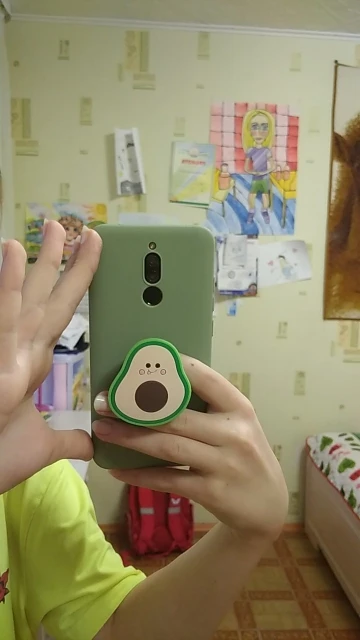 Дочь уже измусолила его. Авокадо резиновый, само тело попсокета - пластик. В итоге приклеили это резиновое чудо к жёсткому пластику на сопли. Оно быстро отвалилось. Мы приклеили на супер клей и пока все держится.