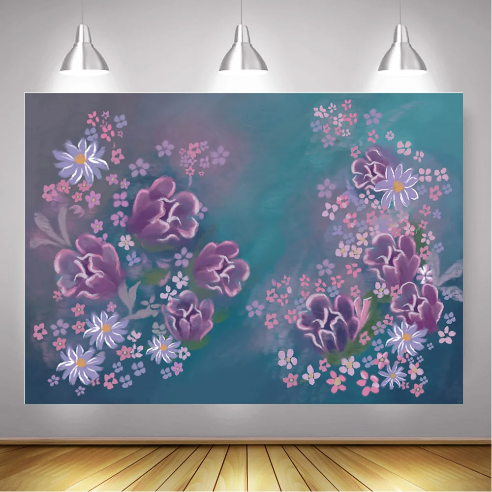 Фиолетовый цветочный фон для портретной фотосъемки на один день рож...