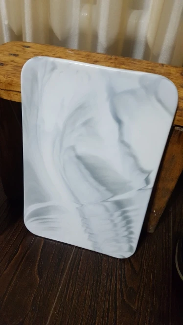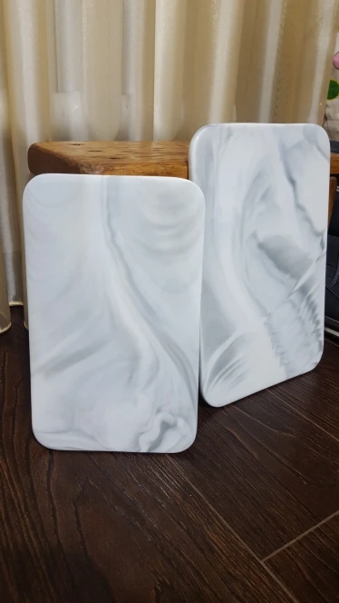 Хорошие доски тяжёлые Будьте осторожны при покупке чтобы не соскальзывали из рук. с одной стороны доски шершавые Это для того чтобы не скользила по столешнице а с другой стороны они глянцевые и гладкие. сразу хочу сказать что это НЕ мрамор и НЕ гранит это что-то типа плитки, кафель но потолще.