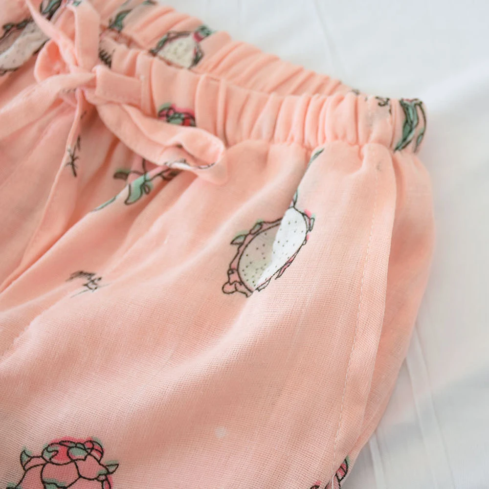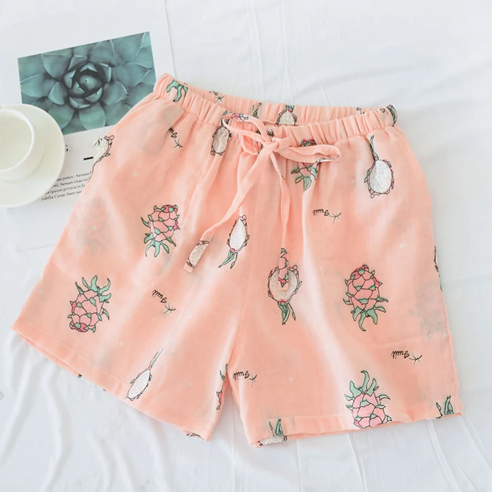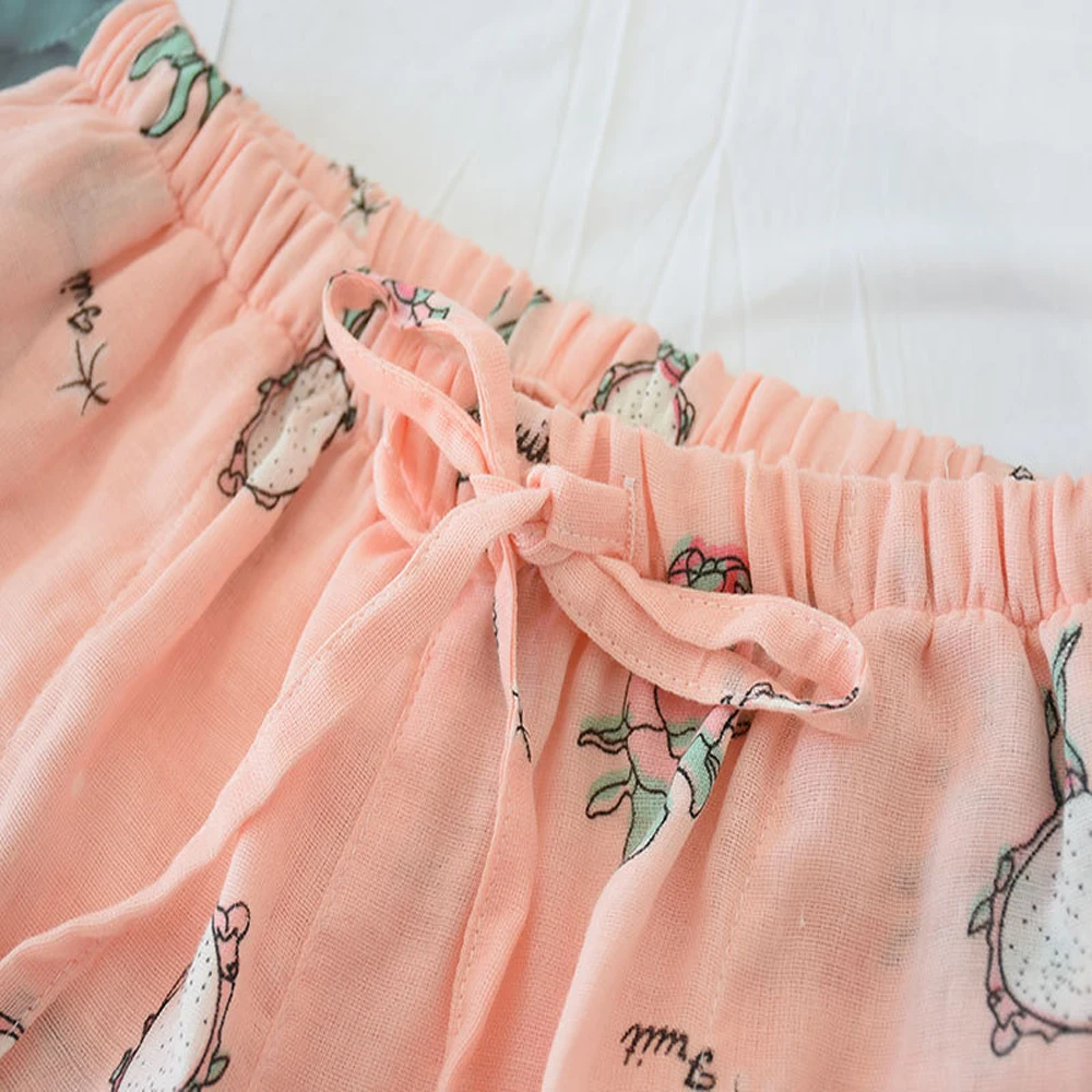 Пижама женская с принтом, милые хлопковые марлевые штаны для дома, короткие штаны для сна, летние пляжные штаны для отдыха, одежда для сна
