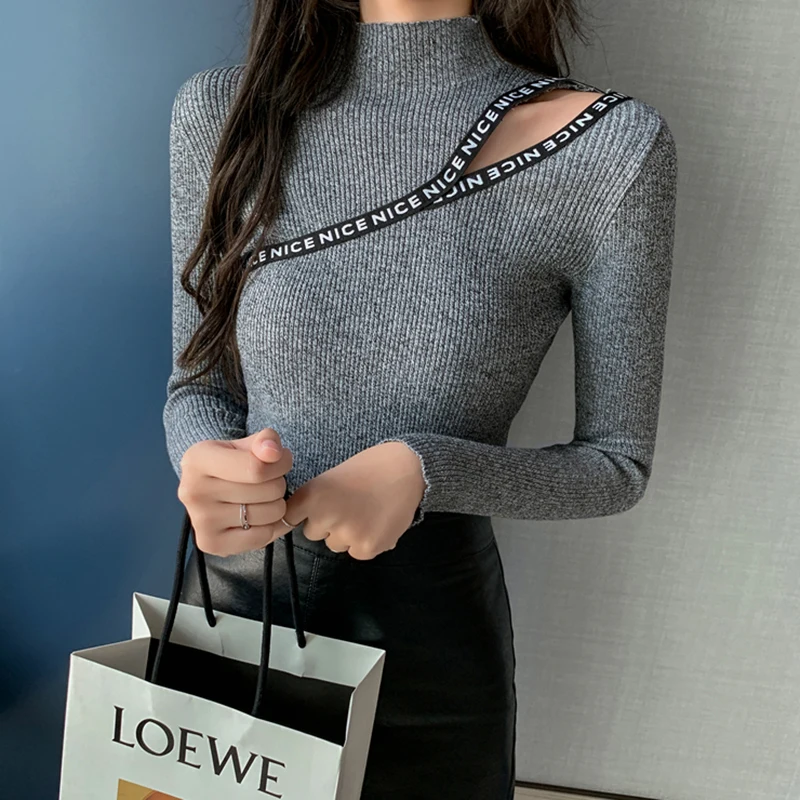 Свитер LJSXLS с открытыми плечами, высокоэластичные шикарные свитера для женщин, сезон осень-зима 2022, пикантный облегающий Женский пуловер в Корейском стиле, Женский пуловер
