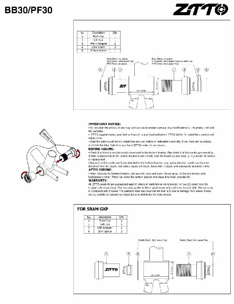 Нижние кронштейны ZTTO BB30sh, керамический адаптер BB30, 24 мм, для горного велосипеда, двойное Силиконовое уплотнение
