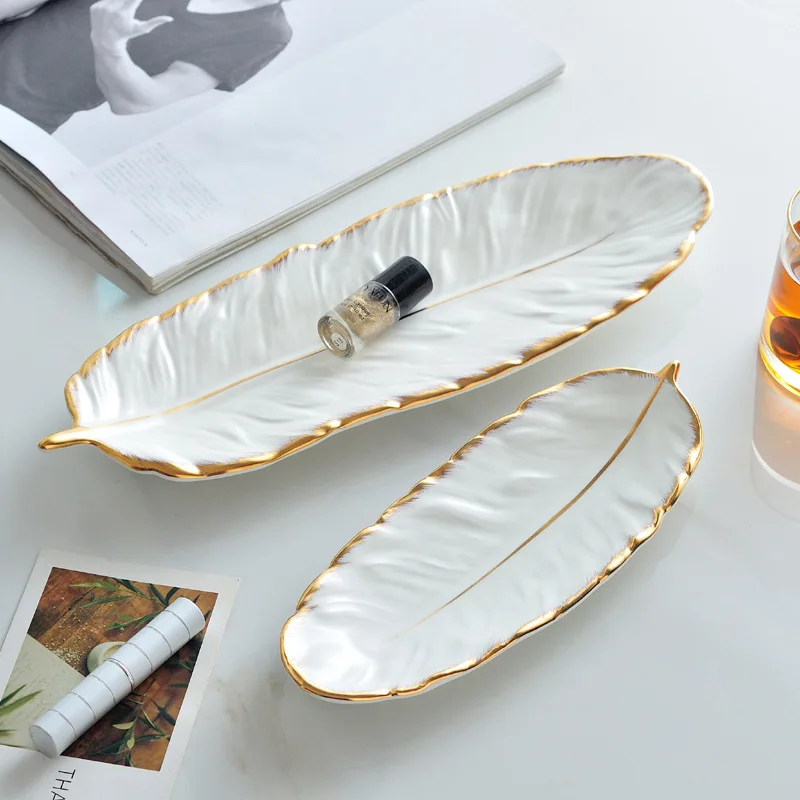 Керамическая посуда в виде пера для фруктовсушиторта, поднос для хр...