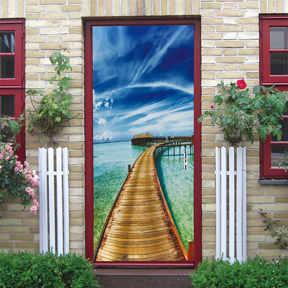 2 шт./компл. морские обои 3D наклейка на дверь для кухни, спальни, украшения, раздвижные стеклянные двери, постер, домашний дизайн, декор настенные наклейки с росписью