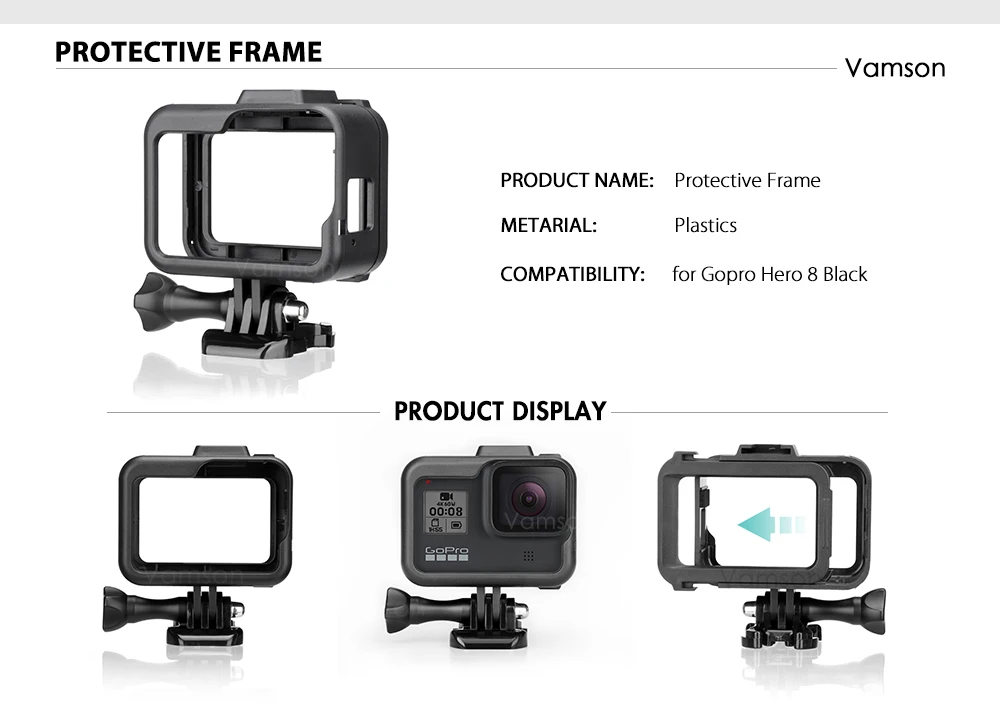 Vamson для GoPro Hero 8, черный, аксессуары для GoPro, водонепрониц...