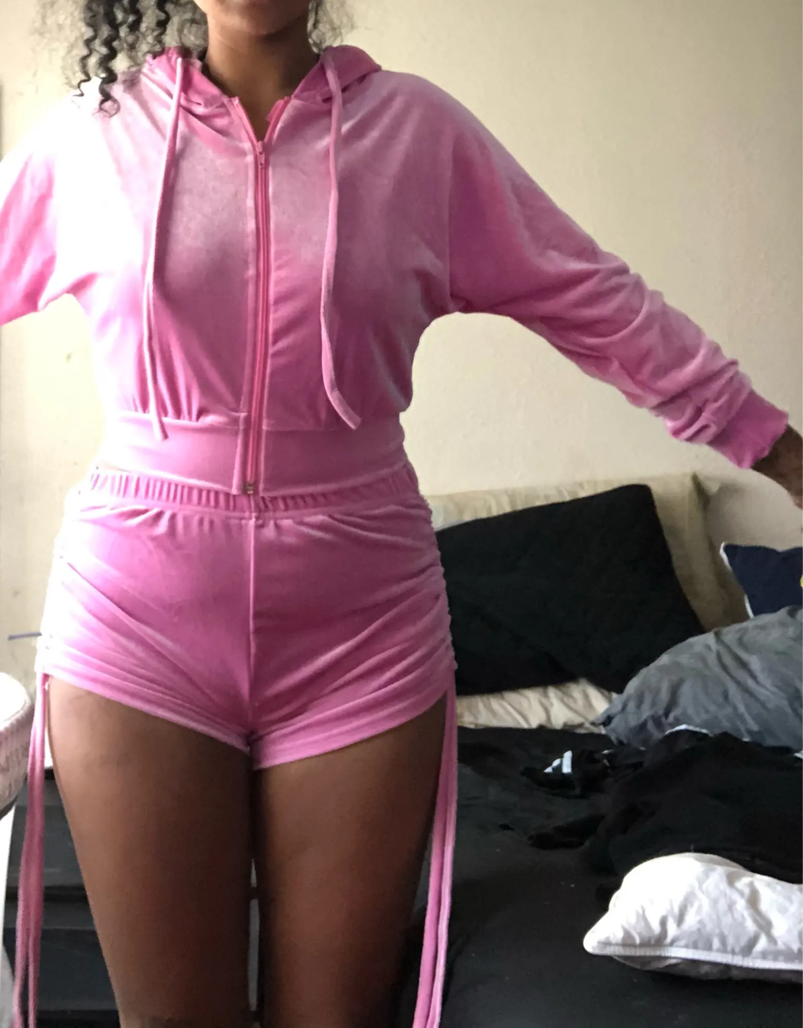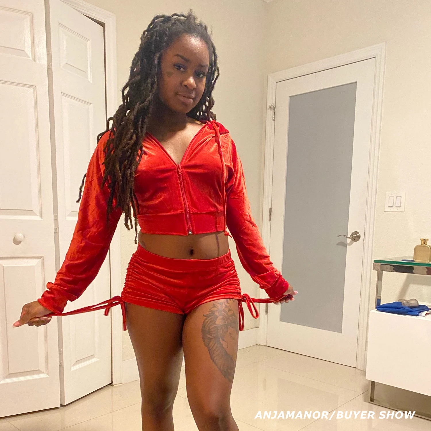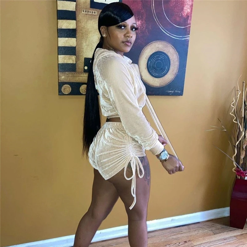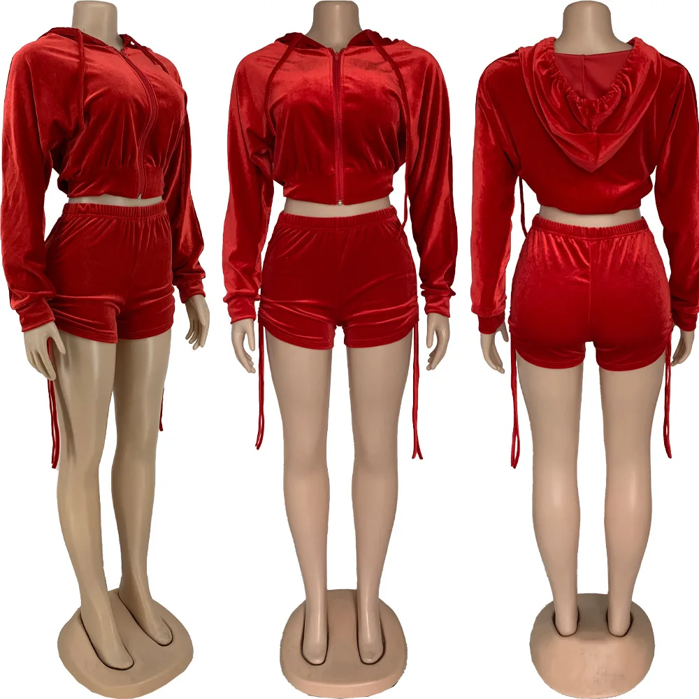 Женский спортивный костюм с длинным рукавом anjaview, розовый Бархатный комплект из 2 предметов, повседневный укороченный топ с капюшоном и шорты женские костюмы, D13-DC43